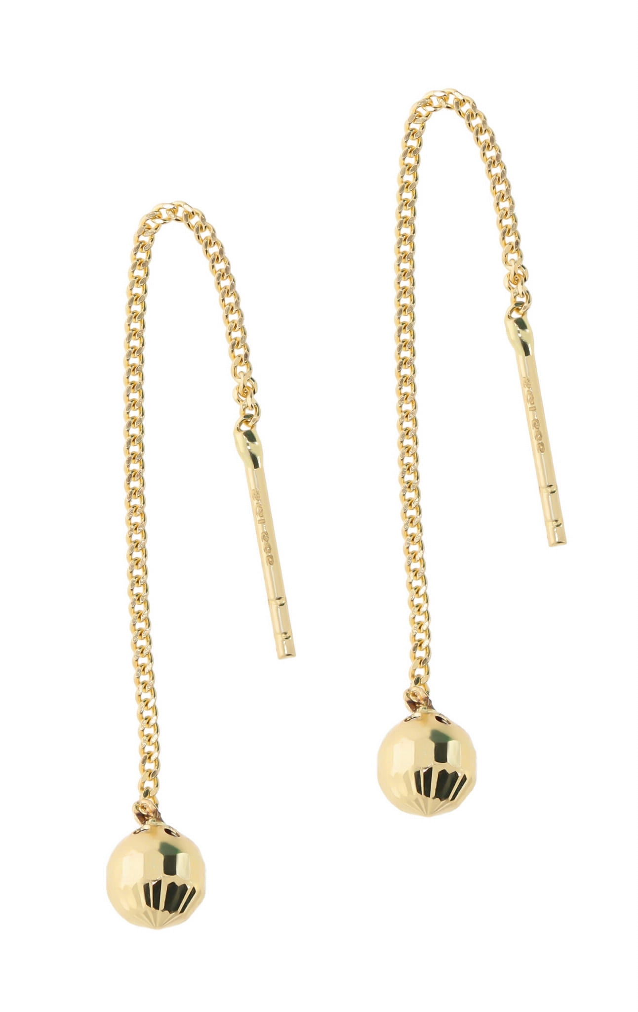 Elegantiški moteriški geltono aukso kabantys auskarai su rutuliukais 585