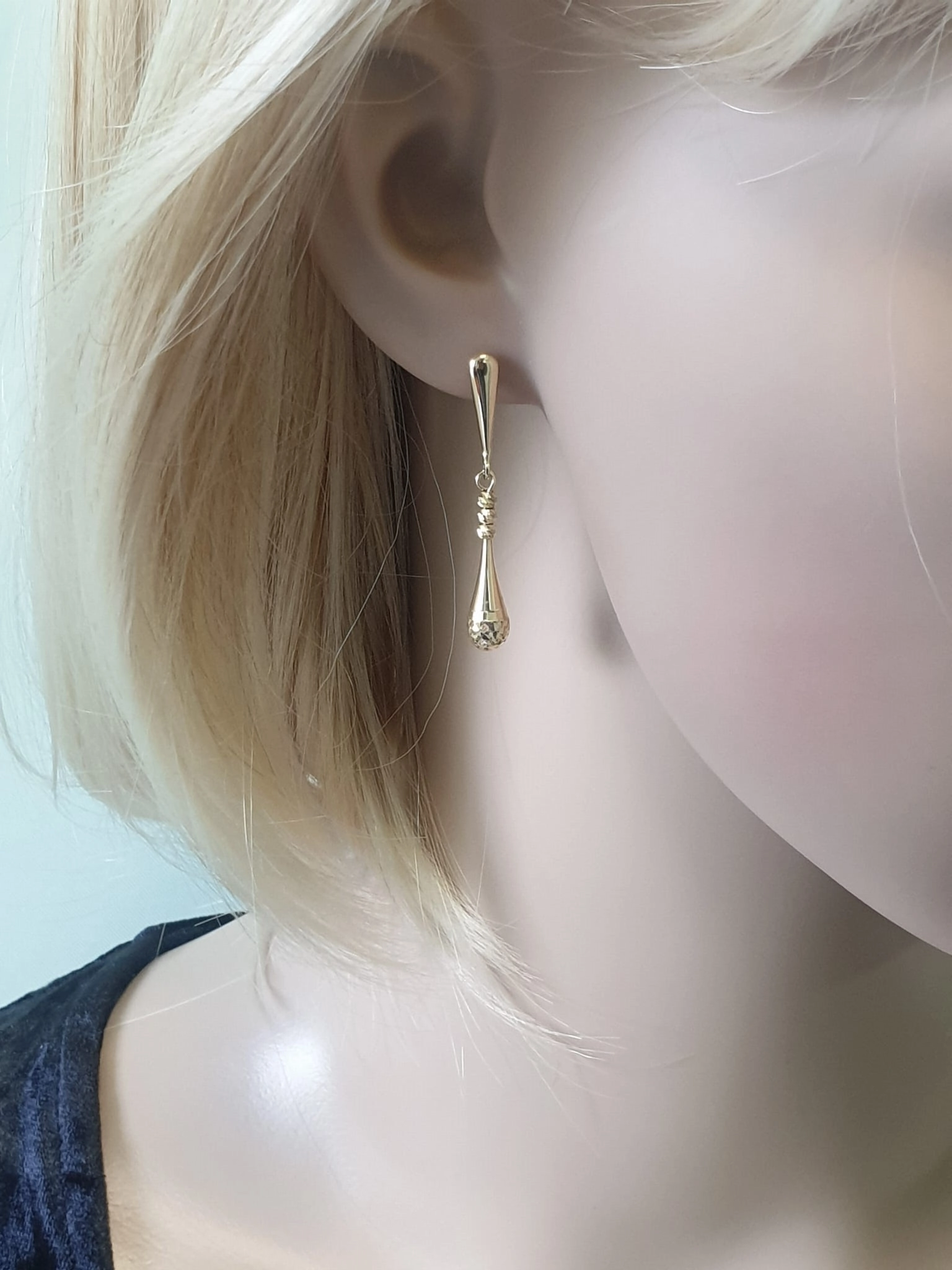 Elegantiški moteriški geltono aukso lašo formos auskarai 585