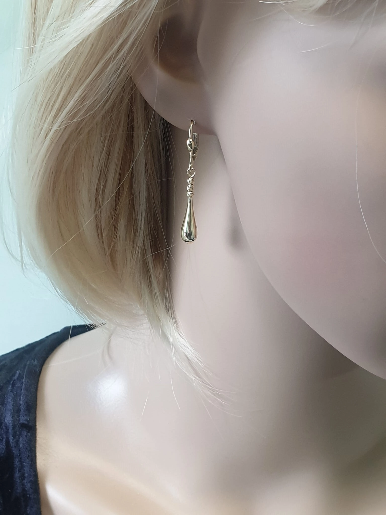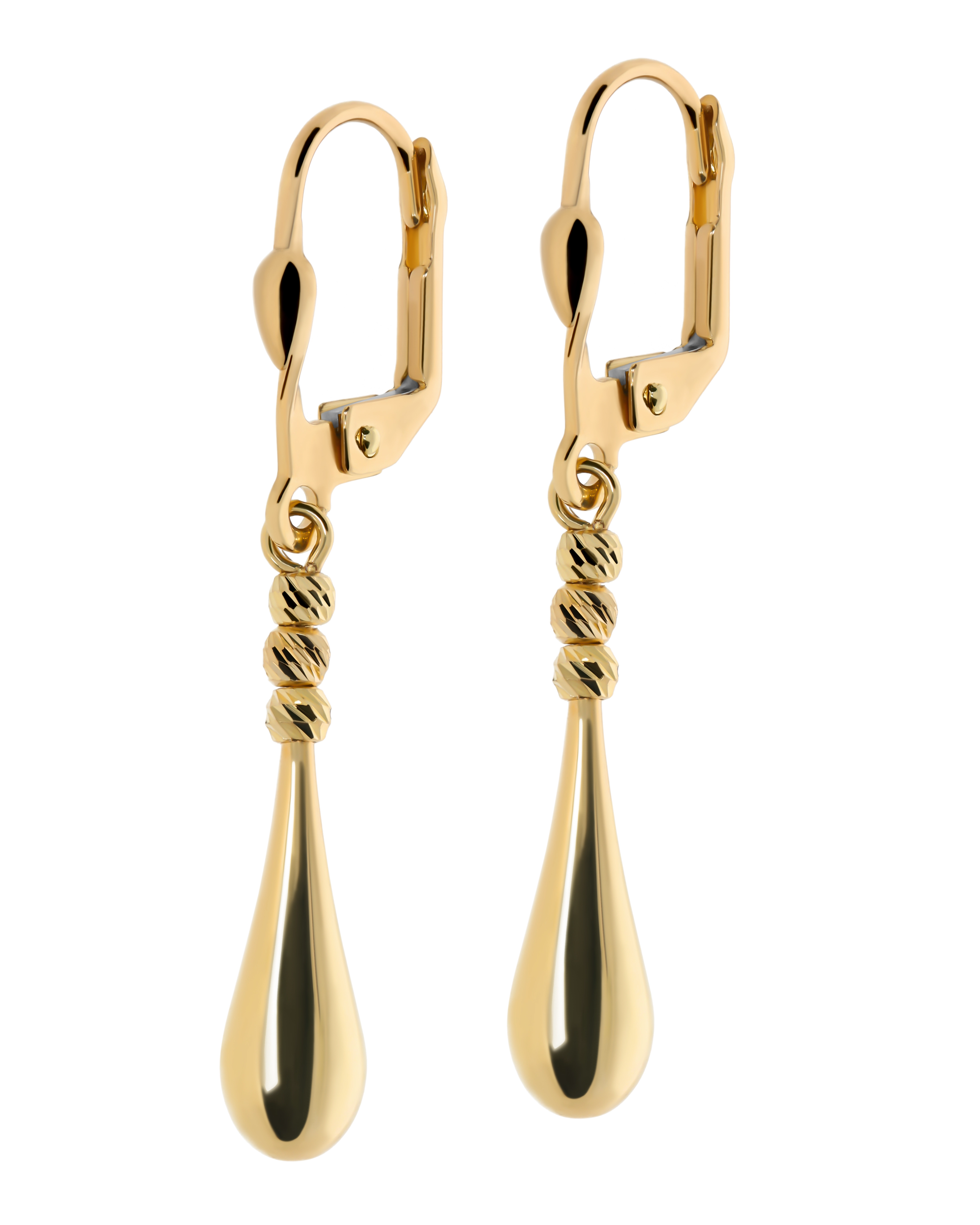 Elegantiški moteriški geltono aukso lašo formos auskarai 585