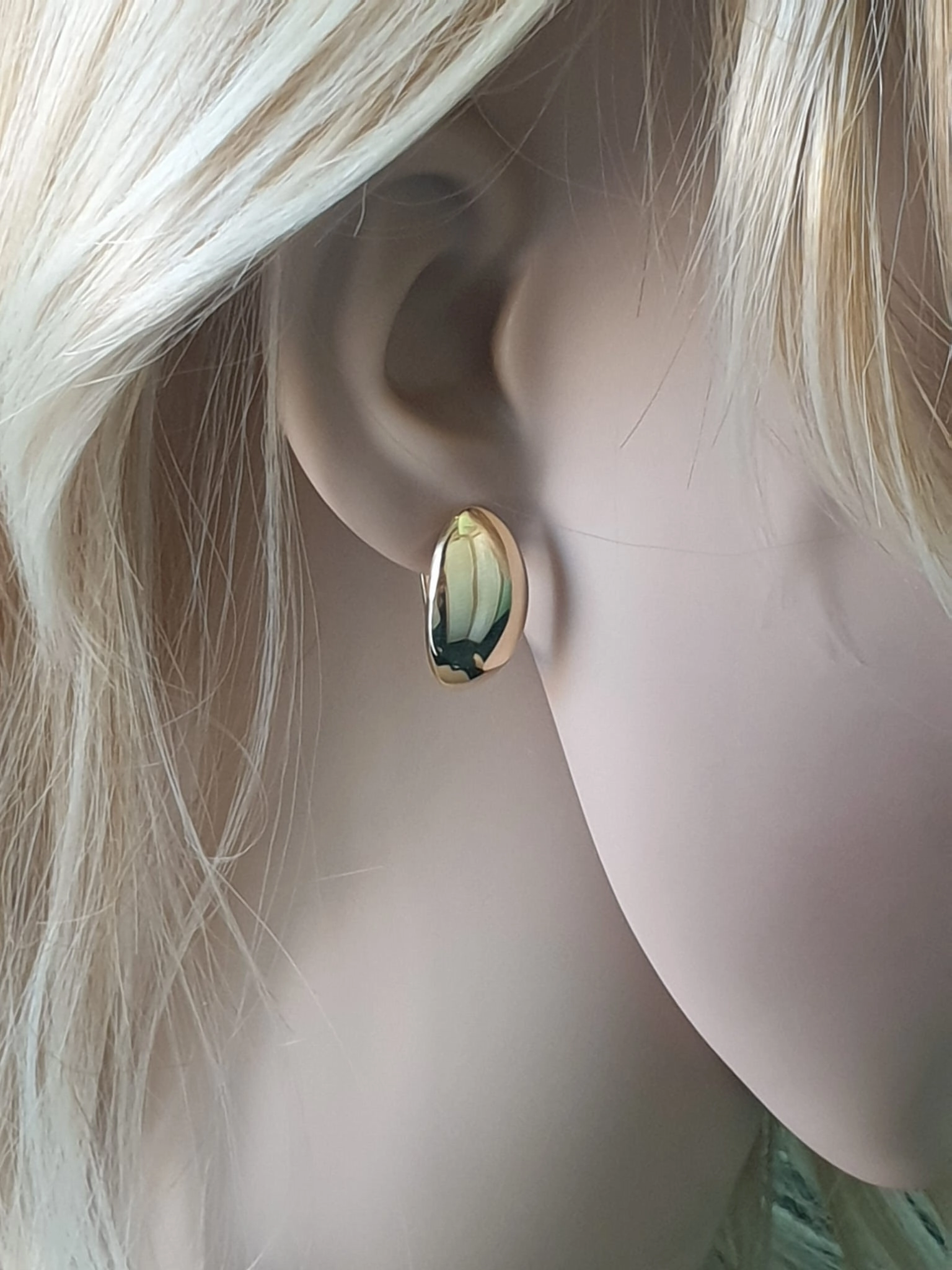 Kruopščiai pagaminti iš aukščiausios kokybės 585 prabos aukso, šie auskarai pasižymi subtilia, tačiau ryškia ovalo forma, kuri puikiai prisitaiko prie veido kontūrų. Jų švelniai išlenktas dizainas ir nepriekaištingai poliruotas paviršius atspindi šviesą, sukurdami akinantį spindesį, kuris nepaliks abejingų. Auskarų ilgis yra 2,1 cm, o plotis – 1,2 cm, todėl jie yra pakankamai pastebimi, tačiau ne per daug masyvūs, idealiai tinkantys tiek kasdieniam dėvėjimui, tiek ypatingoms progoms.