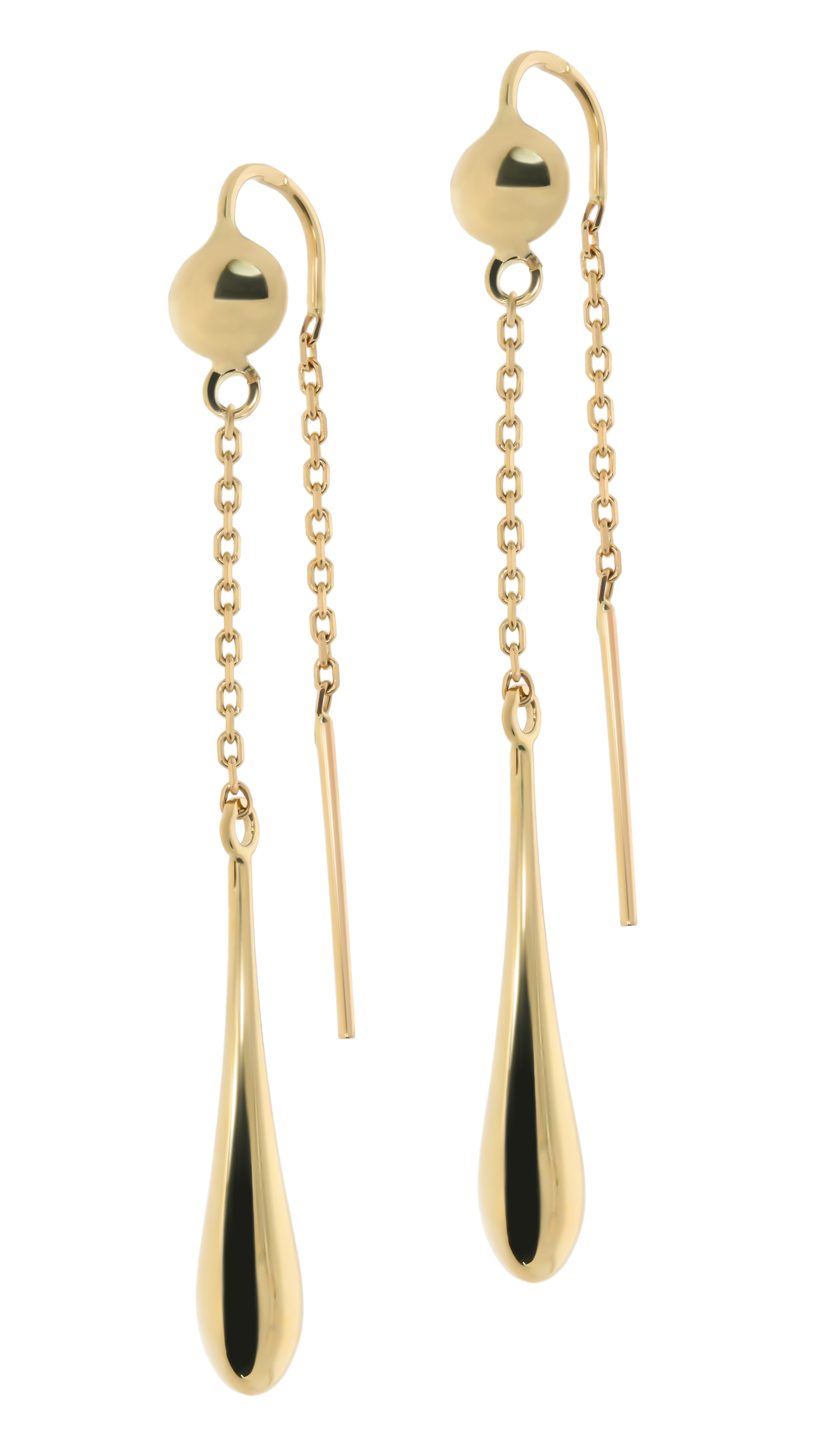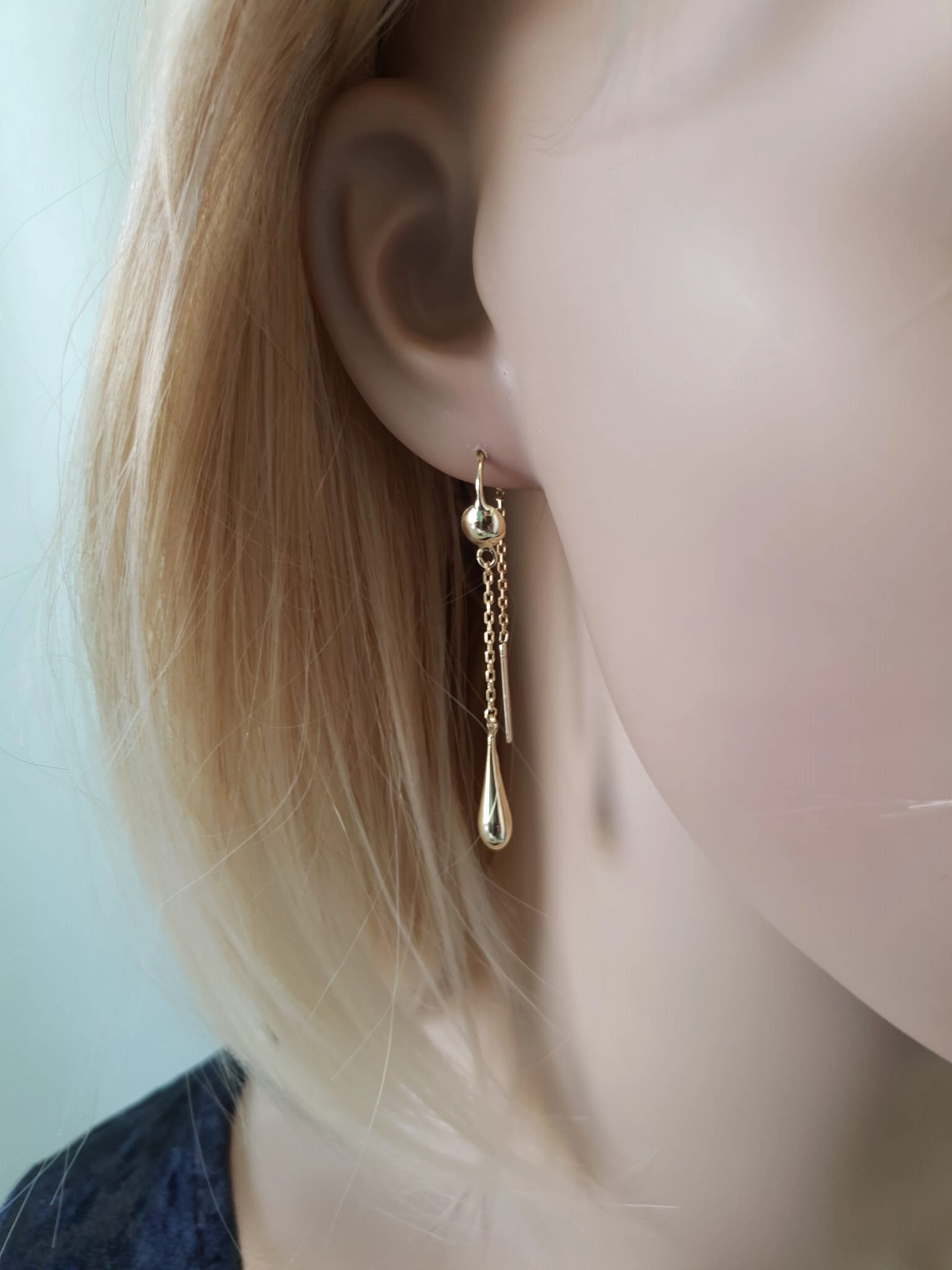 Auskarų ilgis siekia 5 cm, o plačiausia dalis – 5 mm, suteikiant jiems grakštumo ir vizualinio lengvumo. Praveriamas užsegimas užtikrina patogumą ir saugumą, o ilgos, plonos grandinėlės, besibaigiančios elegantiškais lašo formos elementais, suteikia dinamiškumo ir žaismingumo. Šie auskarai yra puiki dovana sau ar artimajai, norinčiai pabrėžti savo išskirtinumą ir pasitikėjimą. Jie puikiai tinka gimtadieniui, jubiliejui ar tiesiog kaip maloni staigmena, kuri primins apie jūsų rūpestį ir gerą skonį.