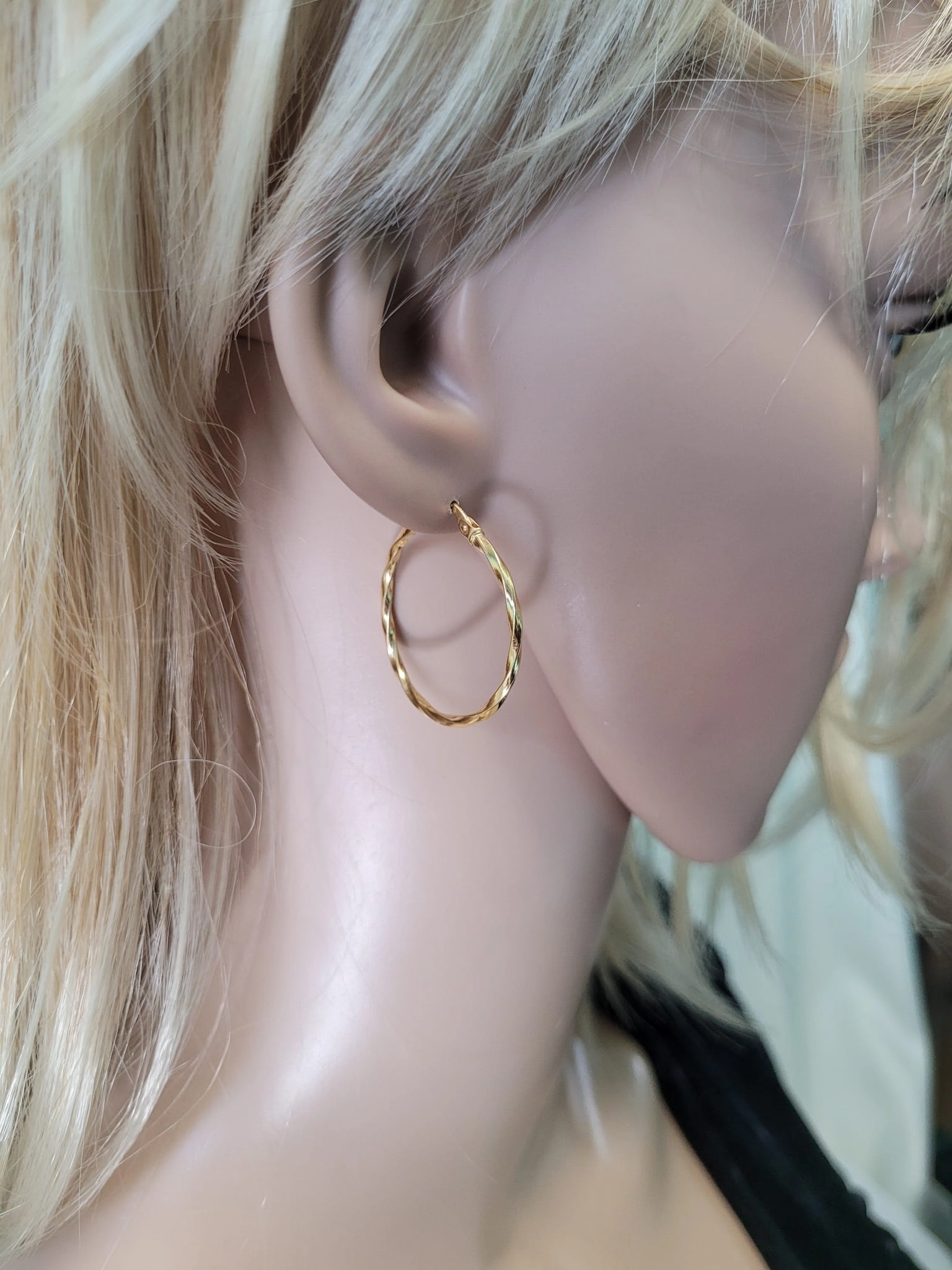 Šie auskarai išsiskiria savo unikaliu vytu dizainu, kuris sukuria subtilų šviesos žaismą ir prideda dinamiškumo klasikinei lankelių formai. Jų ilgis – 2,9 cm, o plotis – 2 mm, todėl jie yra pakankamai pastebimi, kad neliktų nepastebėti, tačiau ir pakankamai subtilūs, kad tiktų bet kokiai progai. Tai puikus pasirinkimas tiek kasdieniam įvaizdžiui pagyvinti, tiek ypatingai šventei, kurioje norite spindėti.