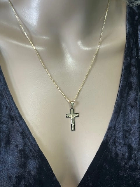 Kiekviena detalė sukurta su aistra ir preciziškumu, užtikrinant ne tik estetinį grožį, bet ir patogumą dėvint. Kryželis yra 2,70 cm ilgio ir 1,45 cm pločio, todėl jis yra pakankamai pastebimas, bet kartu ir subtilus. Tai puiki dovana Komunijos ar Krikšto proga, simbolizuojanti dvasines vertybes ir nuolatinę apsaugą. Taip pat tai idealus pasirinkimas tiems, kurie ieško prasmingo ir stilingo papuošalo kasdieniam nešiojimui.