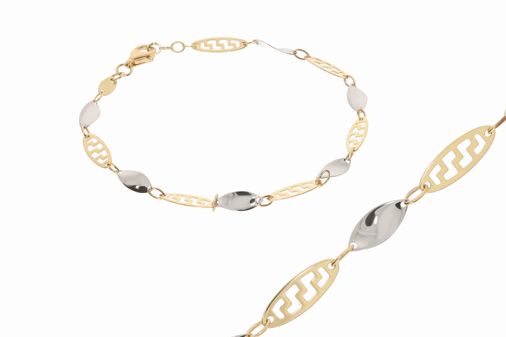 Išskirtinė moteriška dviejų spalvų aukso apyrankė su raštais 585