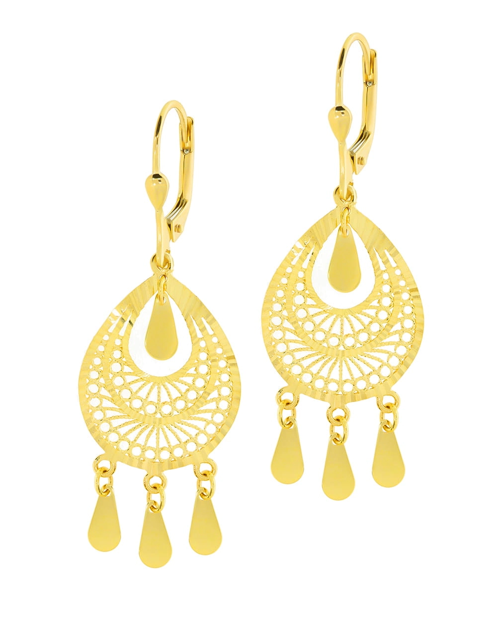 Išskirtiniai moteriški geltono aukso ažūriniai auskarai 585