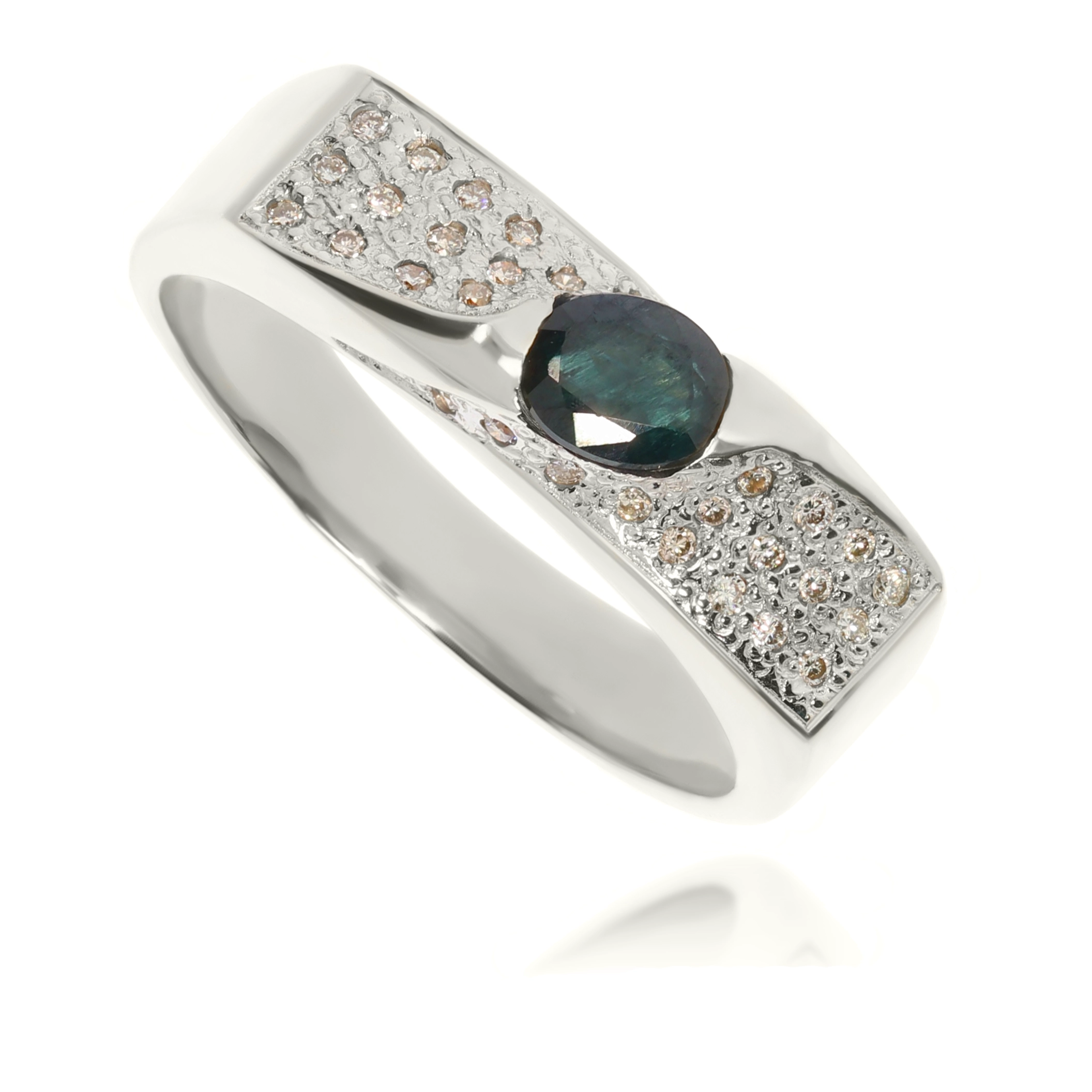 Išskirtinis moteriškas balto aukso žiedas su safyru ir deimantais 585