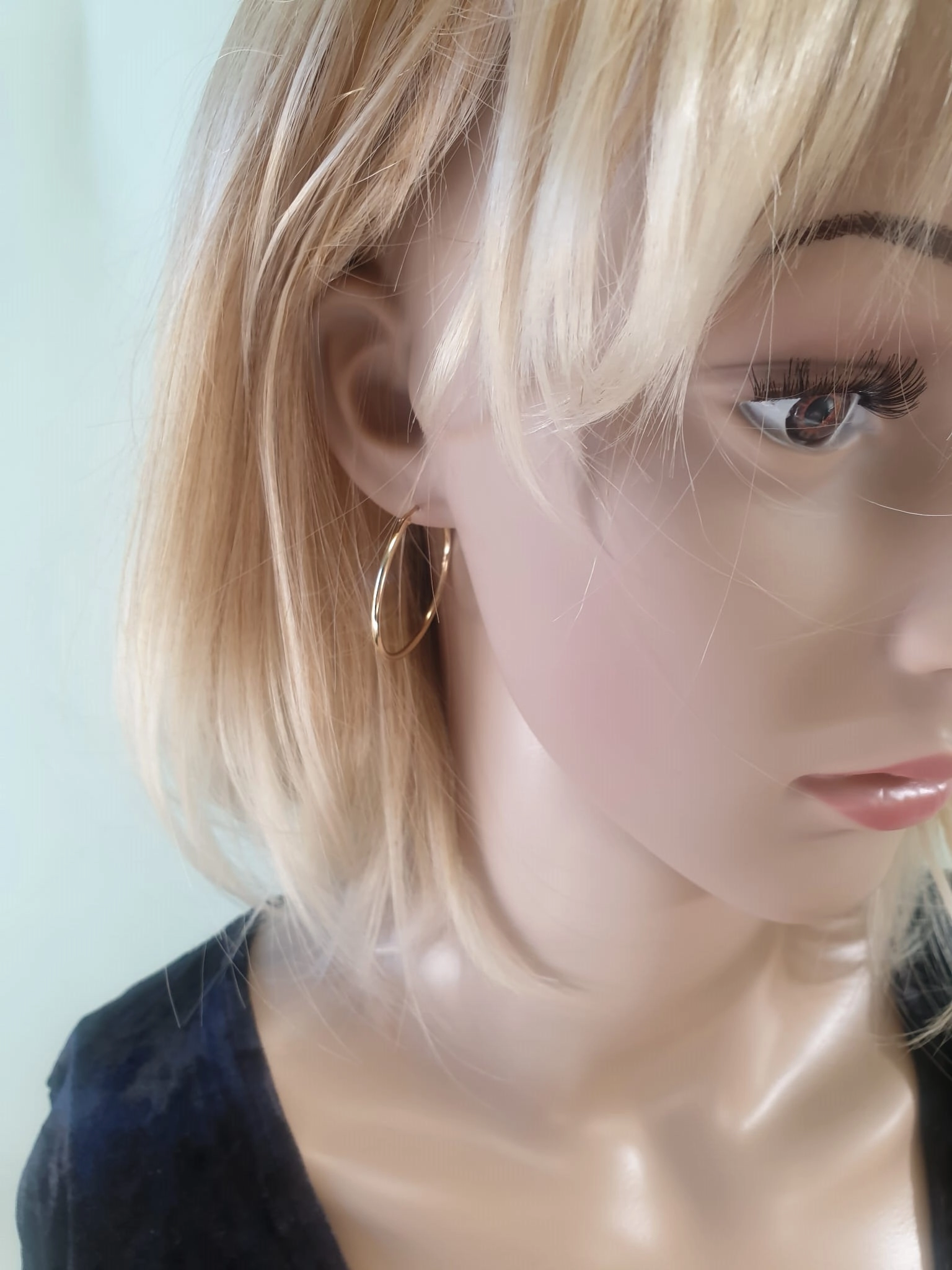 Šie auskarai – tai ne tik papuošalas, bet ir stiliaus pareiškimas. Jų elegantiškas, minimalistinis dizainas puikiai dera prie bet kokios aprangos – nuo kasdienės iki šventinės. Su 3,5 cm skersmeniu ir 2 mm pločiu, jie yra pakankamai pastebimi, kad suteiktų Jūsų įvaizdžiui išbaigtumo, tačiau pakankamai subtilūs, kad nebūtų pernelyg įkyrūs. Tai puiki dovana sau ar mylimam žmogui bet kokia proga – gimtadienio, jubiliejaus ar tiesiog norint parodyti dėmesį. Leiskite šiems auskarams tapti Jūsų mėgstamiausiu aksesuaru, kuris lydės Jus kiekviename žingsnyje, suteikdamas pasitikėjimo savimi ir spindesio.