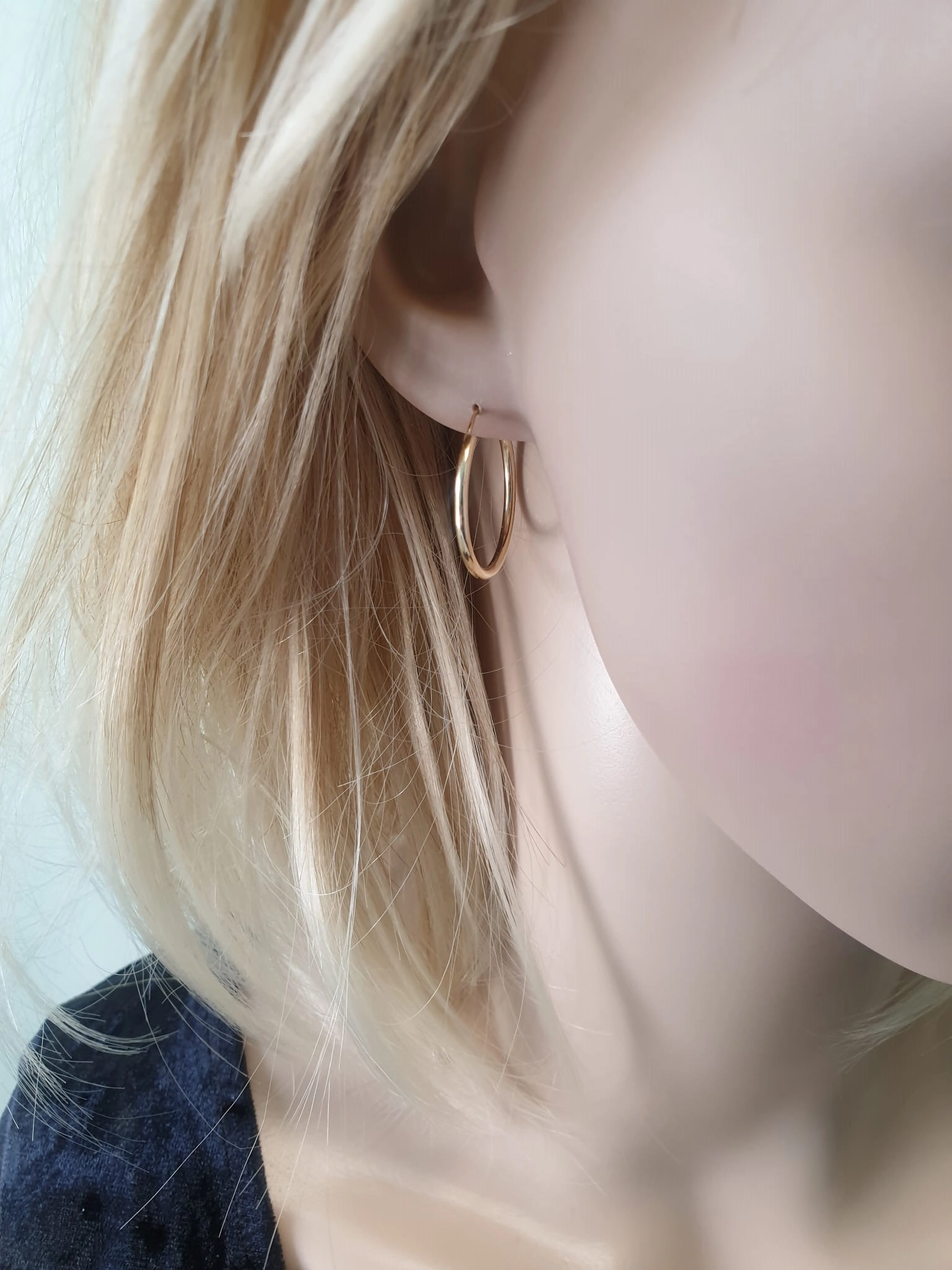 Šie auskarai, kurių skersmuo siekia 2,4 cm, o plotis – 2 mm, yra tobulas pasirinkimas tiek kasdieniam dėvėjimui, tiek ypatingoms progoms. Jų minimalistinis, tačiau rafinuotas dizainas leidžia juos lengvai derinti prie bet kokios aprangos – nuo laisvalaikio stiliaus iki elegantiškos vakarinės suknelės. Jie sukurti taip, kad suteiktų jums pilną spindesį ir taptų jūsų mėgstamiausiu aksesuaru, kurį norėsite dėvėti vėl ir vėl. Padovanokite sau ar brangiam žmogui šią išskirtinę juvelyriką, kuri spinduliuos grožiu ir kokybe ilgus metus.
