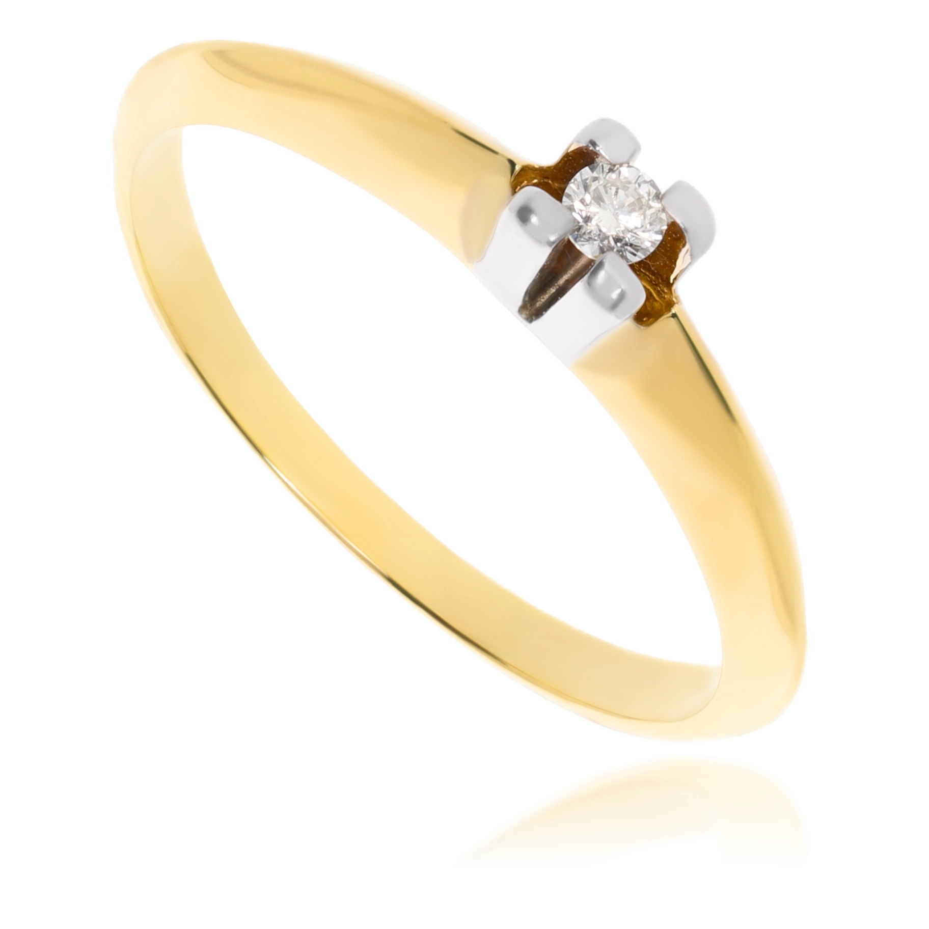 Klasikinis moteriškas dviejų spalvų aukso sužadėtuvių žiedas su deimantu 585