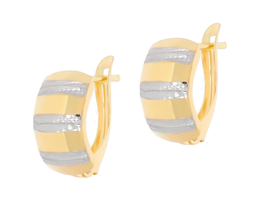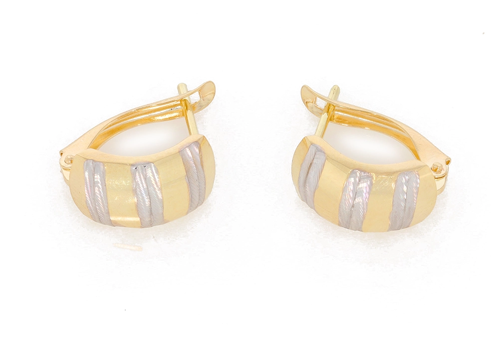 Modernūs moteriški dviejų spalvų aukso auskarai 585