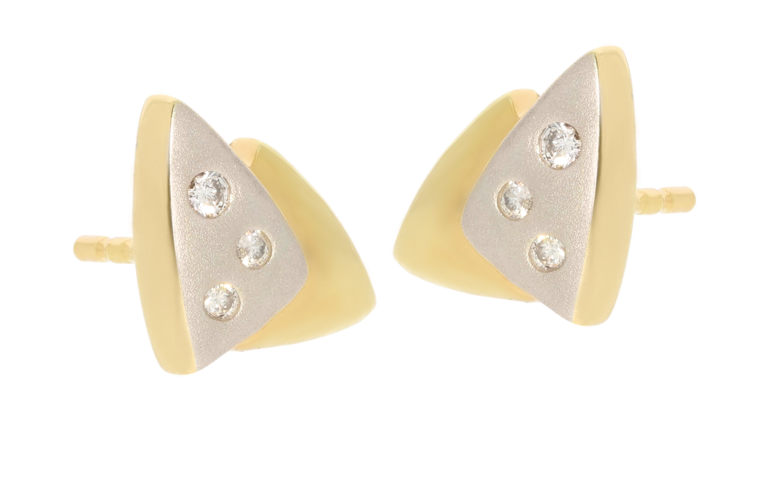 Modernūs moteriški dviejų spalvų aukso auskarai su deimantais 585