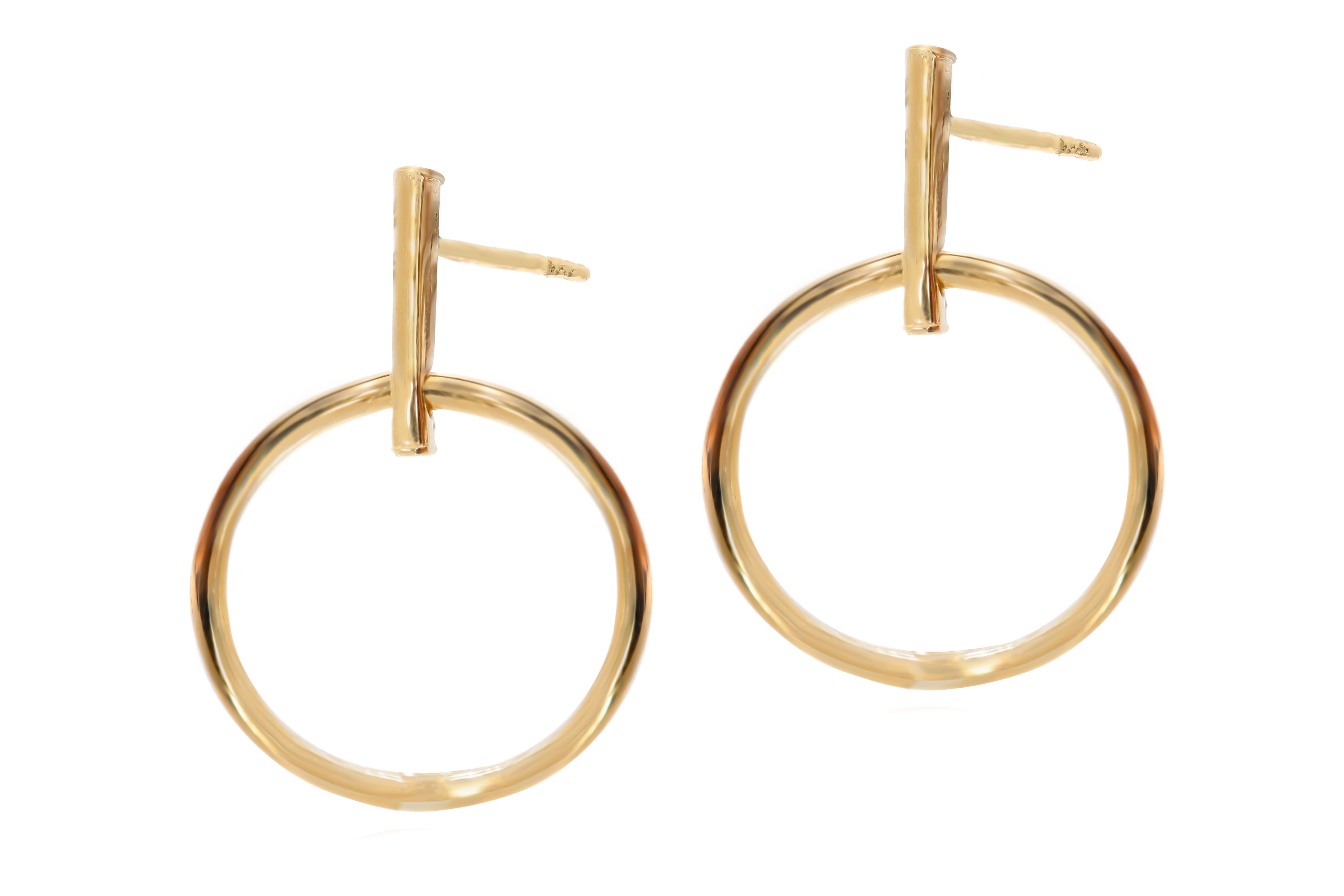 Modernūs moteriški geltono aukso apskritimo formos auskarai 585