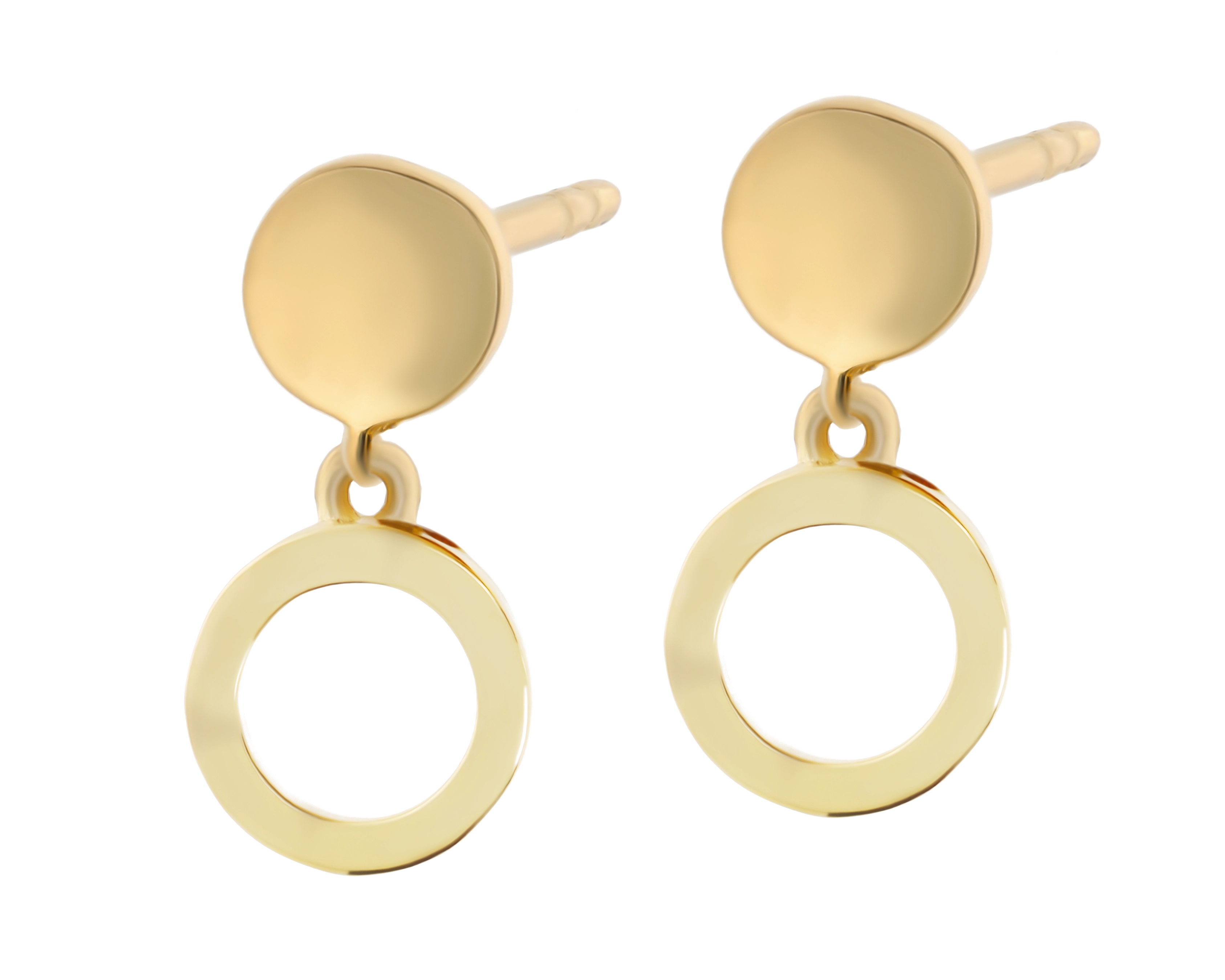 Modernūs moteriški geltono aukso kabantys auskarai „Apskritimai“ 585