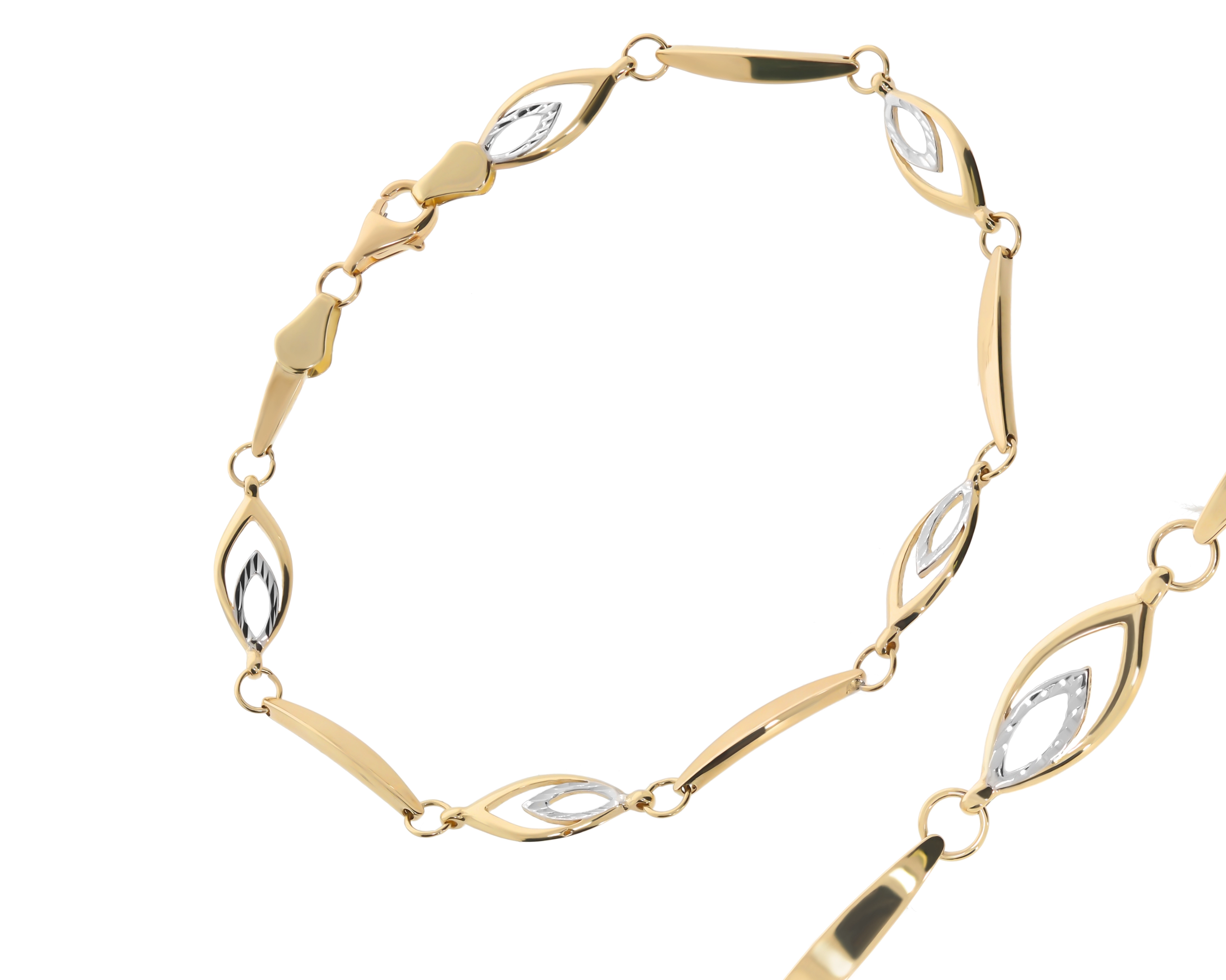 Mūsų asortimente rasite platų kitų apyrankių pasirinkimą, tačiau ši pilnavidurė dviejų spalvų aukso apyrankė išsiskiria savo originalumu ir elegancija. Ji yra puikus pasirinkimas tiems, kurie vertina kokybę, stilių ir nori pabrėžti savo individualumą. Leiskite šiai apyrankei tapti Jūsų kasdienio stiliaus dalimi ir mėgaukitės jos teikiamu grožiu bei spindesiu.