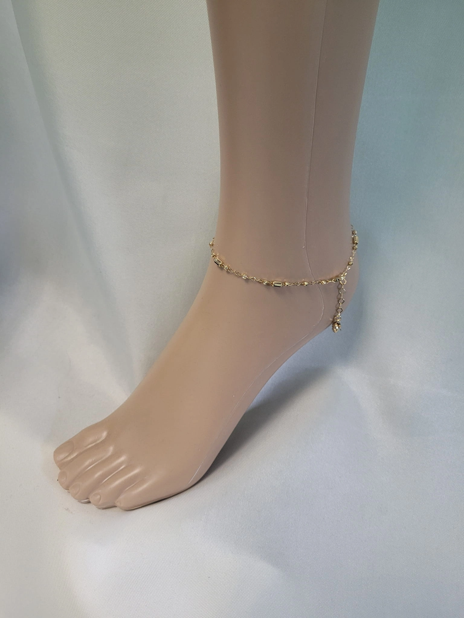 Moteriška geltono aukso apyrankė ant kojos su cirkoniu 585
