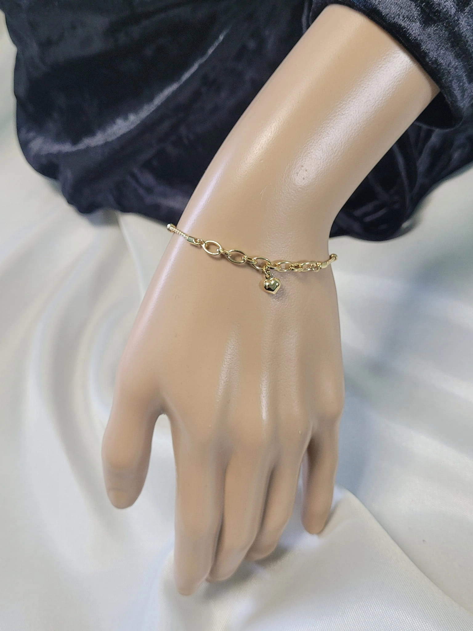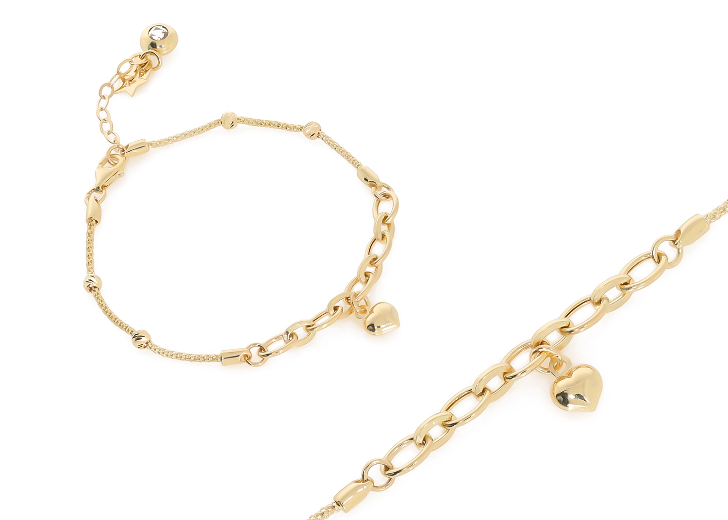 Moteriška geltono aukso apyrankė su širdele ir cirkoniu 585