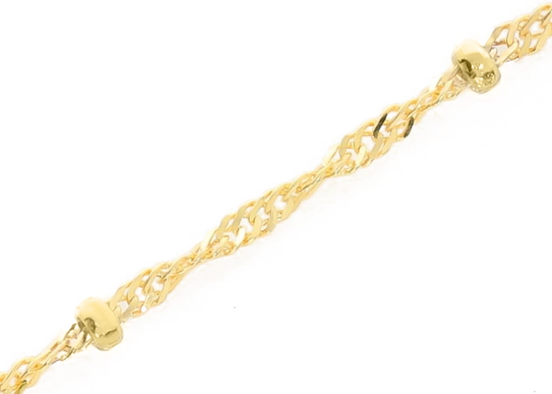 Ši grandinėlė – tai ne tik papuošalas, bet ir išskirtinumo bei pasitikėjimo savimi simbolis. Jos plotis yra 1,50 mm, o auksinių burbuliukų skersmuo – 2,00 mm, suteikiantis jai subtilų, bet pastebimą žavesį. Singapore pynimas, pasižymintis susuktais ir sujungtais elementais, sukuria nuostabų šviesos žaismą, priverčiantį grandinėlę spindėti su kiekvienu judesiu. Tai puiki dovana ypatingai moteriai, norinčiai pabrėžti savo individualumą ir eleganciją, ar tiesiog nustebinti save prabangiu akcentu kasdienybėje.