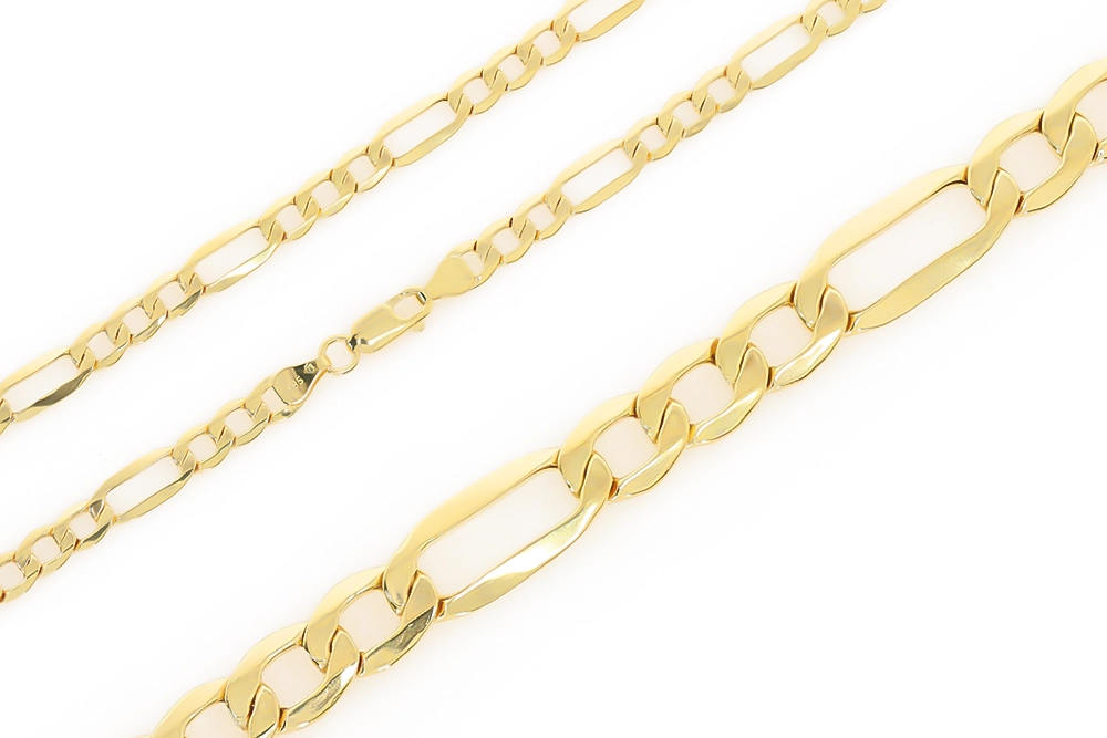 Atraskite nesenstančią eleganciją su mūsų moteriška tuščiavidure geltono aukso Figaro grandinėle, kuri puikiai papildys Jūsų juvelyrikos kolekciją. Ši grandinėlė, pagaminta iš aukščiausios kokybės 585 prabos geltono aukso, išsiskiria savo klasikiniu, tačiau visada madingu Figaro pynimu. Kiekviena grandies jungtis yra kruopščiai sujungta, sukuriant vientisą ir rafinuotą dizainą, kuris traukia akį savo subtiliu blizgesiu.