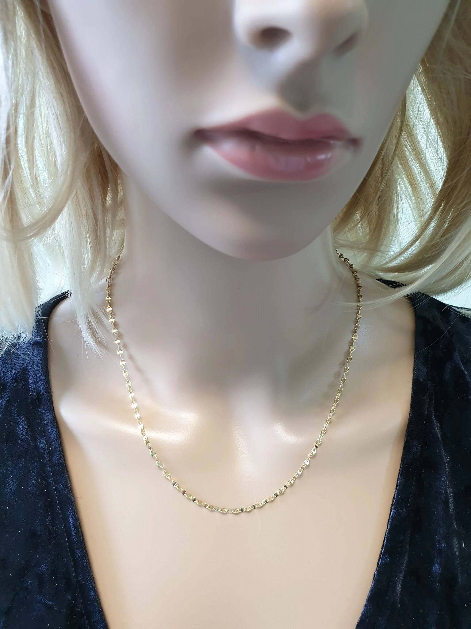 Atraskite subtilų grožį su šia nuostabia tuščiavidure geltono aukso Marina pynimo grandinėle, kuri puikiai papuoš kiekvieną moterį. Ši grandinėlė yra pagaminta iš aukščiausios kokybės 585 prabos aukso, garantuojančio ilgaamžiškumą ir išskirtinį spindesį. Jos Marina pynimas pasižymi elegancija ir modernumu, o kiekviena grandies detalė atspindi kruopštų juvelyrų darbą ir aistrą kurti. Ši grandinėlė yra puikus pasirinkimas kasdieniam nešiojimui ar ypatingoms progoms, suteikiant Jūsų įvaizdžiui rafinuotumo ir žavesio.