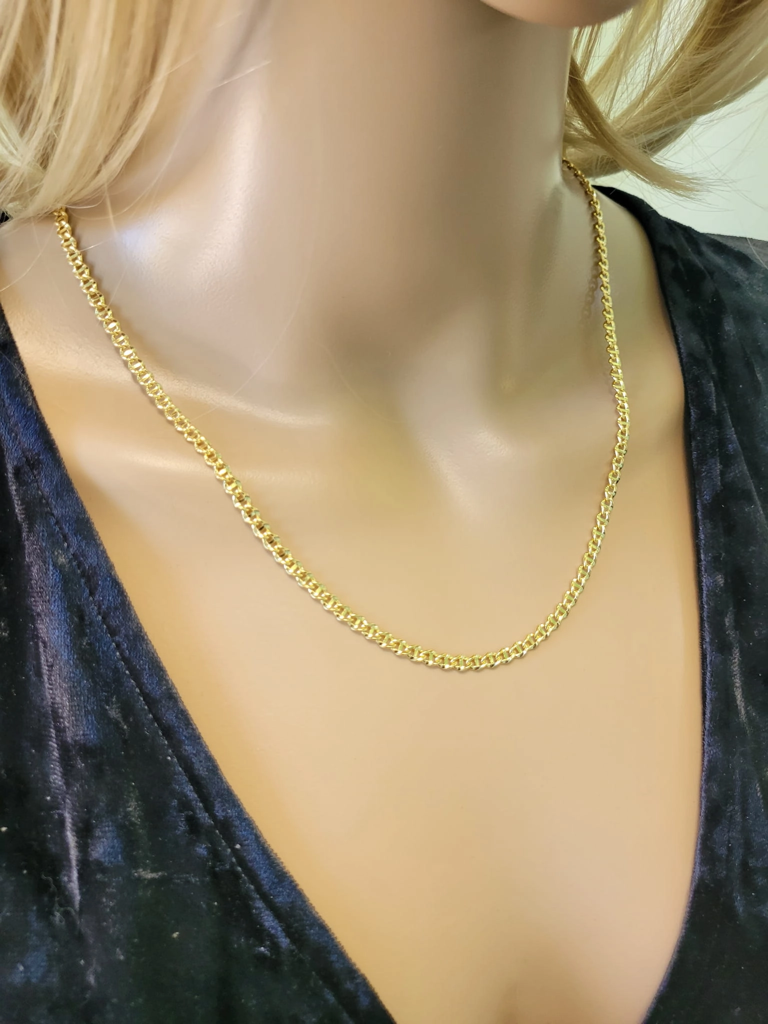 Atraskite subtilų ir elegantišką stilių su šia nuostabia moteriška geltono aukso grandinėle, kuri puikiai papildys Jūsų kasdienį įvaizdį ar taps išskirtiniu akcentu ypatingomis progomis. Ši grandinėlė yra pagaminta iš aukščiausios kokybės 585 prabos geltono aukso, užtikrinančio ilgaamžiškumą ir nepriekaištingą spindesį.