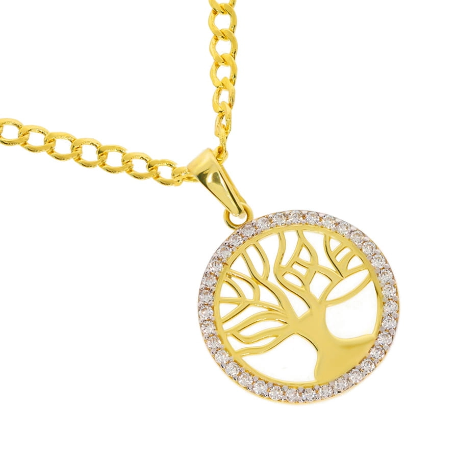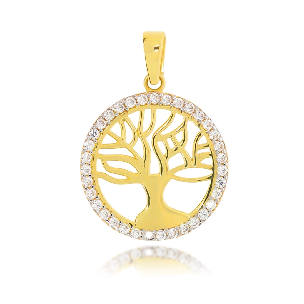 Moteriškas geltono aukso gyvybės medžio pakabukas su cirkoniais 585