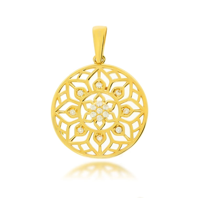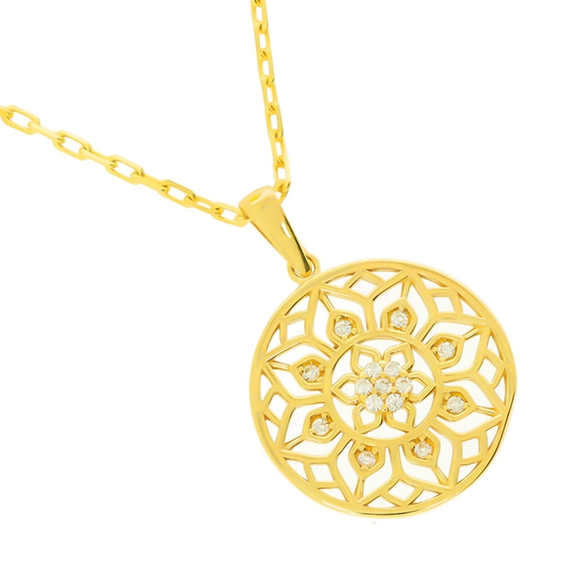 Moteriškas geltono aukso pakabukas su cirkoniais „Mandala“ 585