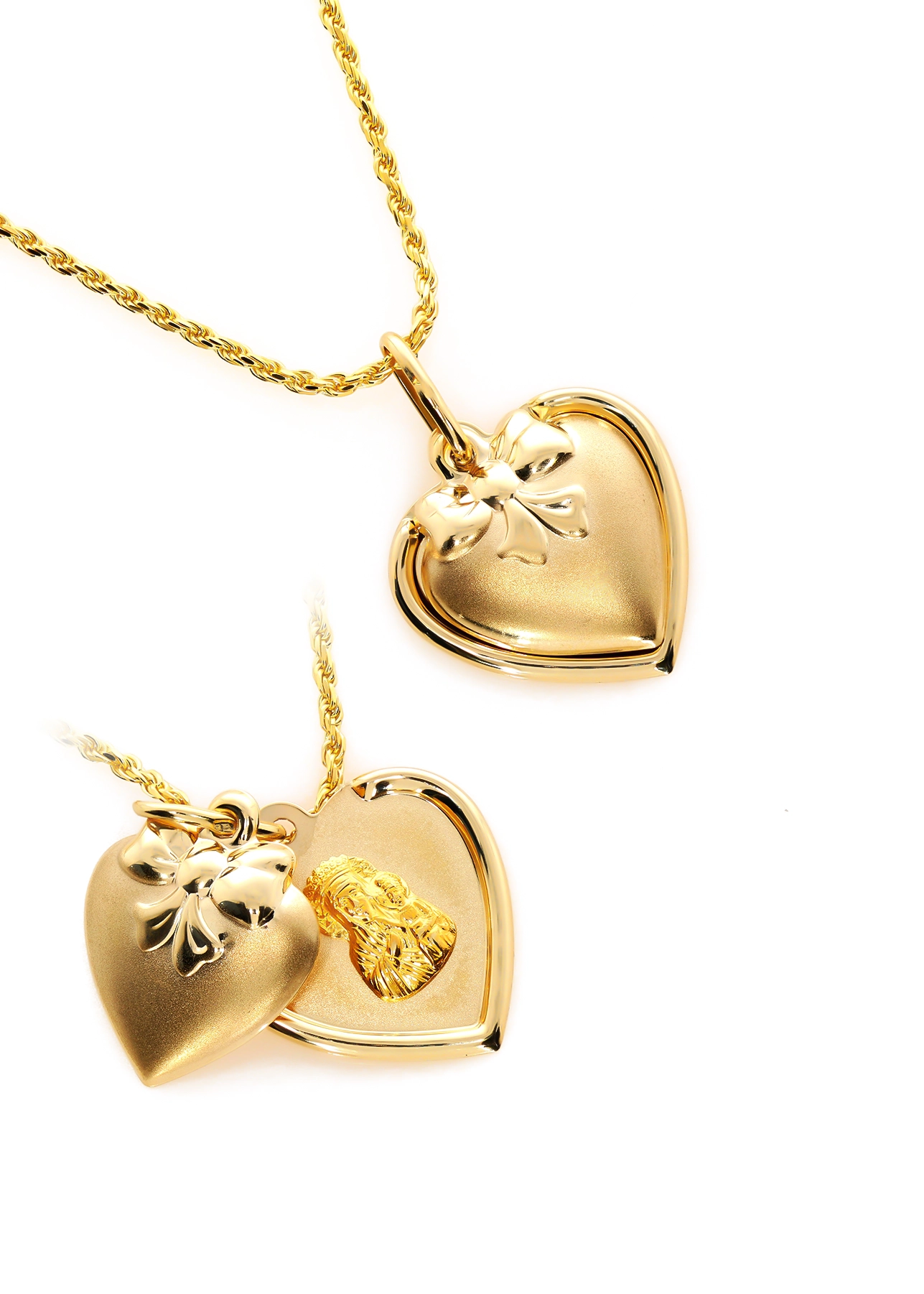 Atraskite nepaprastą grožį ir prasmę su mūsų geltono aukso atveriamu medalikėliu, sukurtu iš 585 prabos aukščiausios kokybės aukso. Šis išskirtinis papuošalas, įkvėptas švelnumo ir tikėjimo, yra ne tik stilingas aksesuaras, bet ir prasmingas simbolis, kuris lydės Jus kiekvieną dieną. Jo širdelės forma, papuošta subtiliu kaspinėliu, atveria paslaptį – viduje slepiasi šventas Motinos Marijos atvaizdas, spinduliuojantis ramybe ir apsauga.
