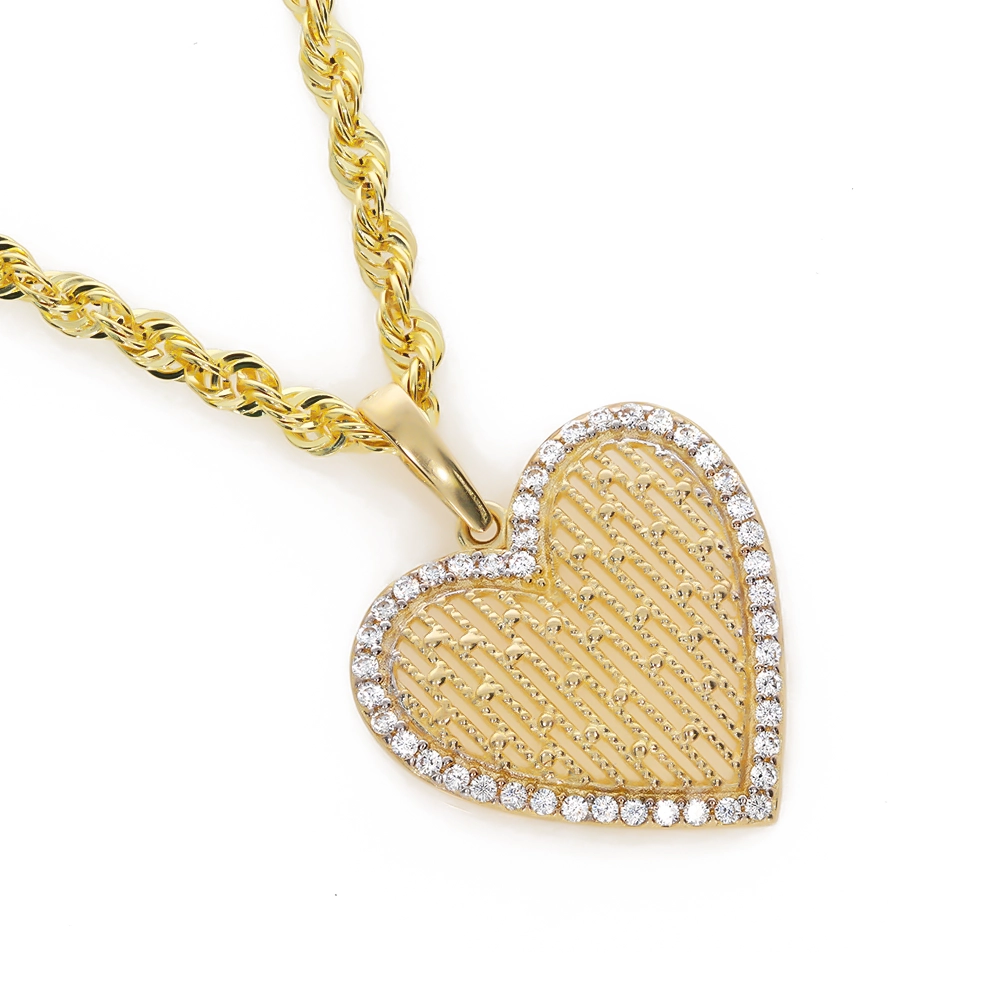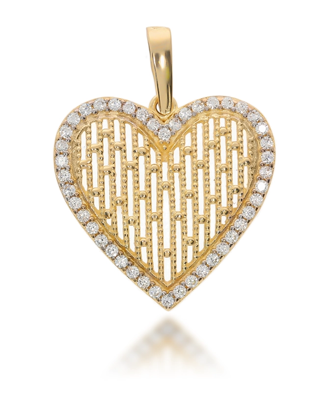 Išreikškite savo jausmus su šiuo nuostabiu geltono aukso širdies formos pakabuku, kuris spinduliuoja elegancija ir romantika. Šis išskirtinis papuošalas, pagamintas iš aukščiausios kokybės 585 prabos aukso, yra puikus pasirinkimas norint pabrėžti savo individualumą ir meilę. Pakabuko dizainas sujungia klasikinę širdies formą su moderniais elementais – jo paviršius dekoruotas subtiliomis įstrižomis linijomis ir smulkiais burbuliukais, suteikiančiais jam unikalumo ir žaismingumo. Kraštus puošia eilė žėrinčių baltų cirkonių, kurie suteikia pakabukui prabangos ir akinančio spindesio, atspindinčio kiekvieną šviesos spindulį.
