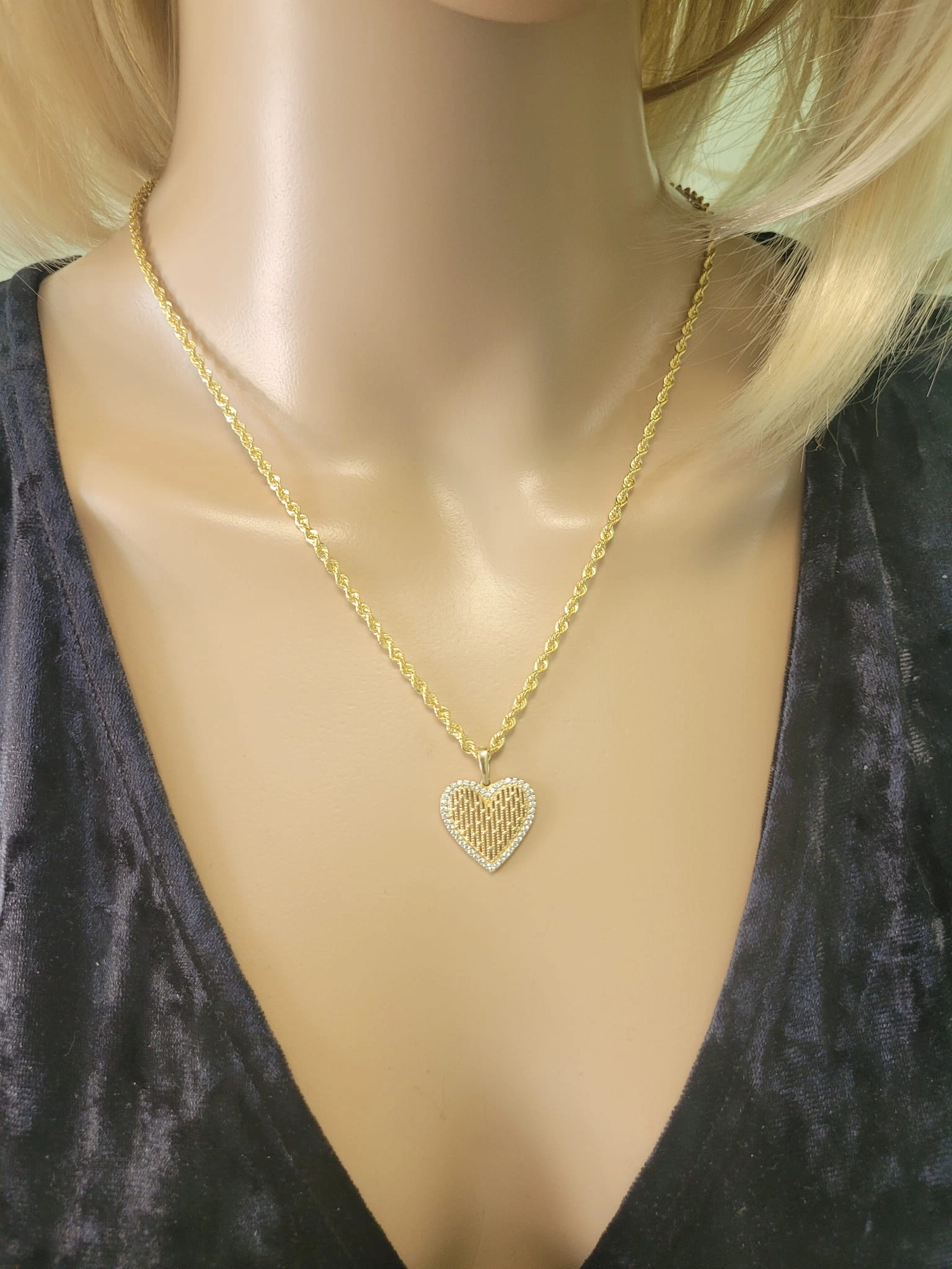 Moteriškas geltono aukso širdies formos pakabukas su cirkoniais 585