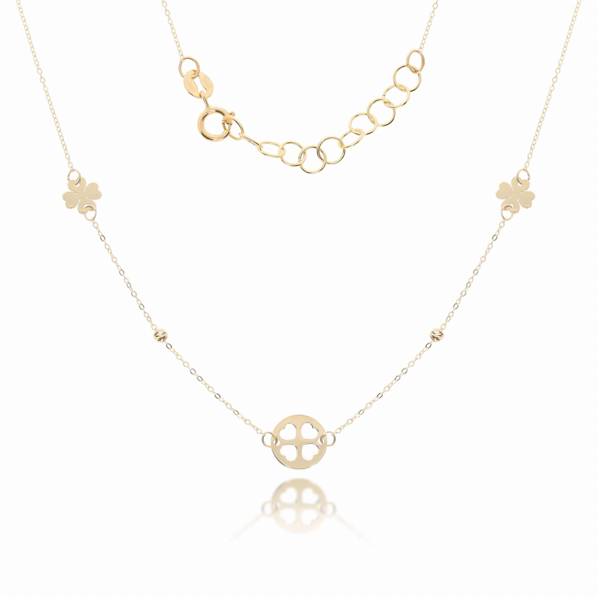 Moteriškas geltono aukso vėrinys su keturlapiais dobilais 585