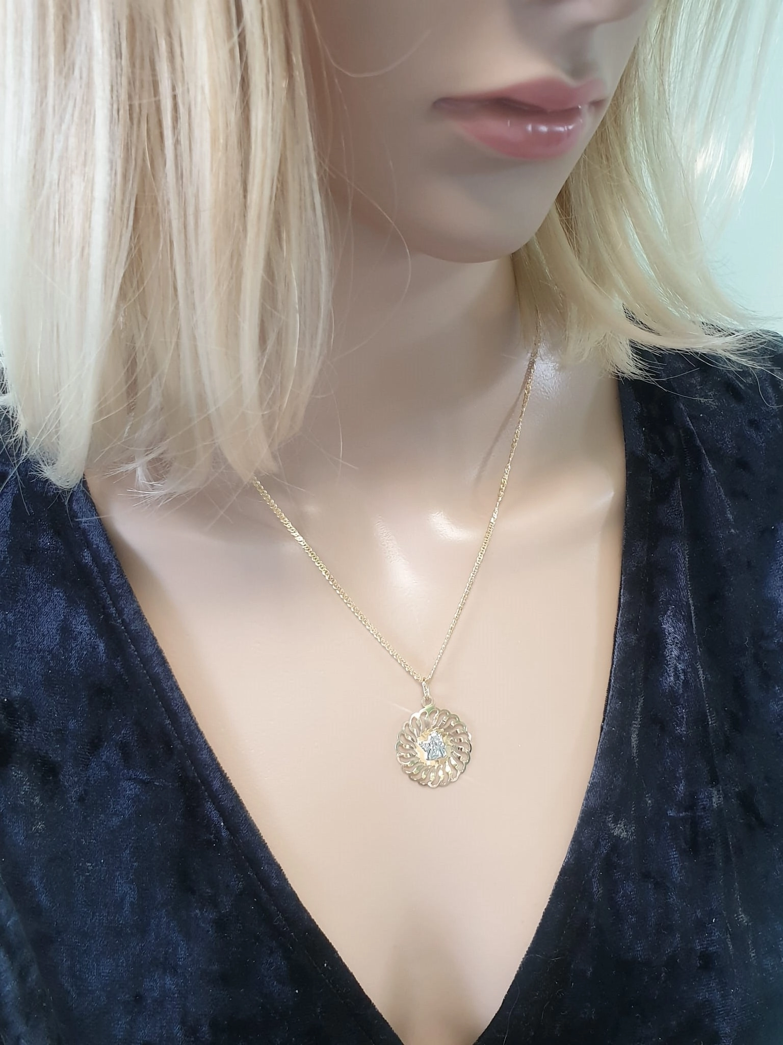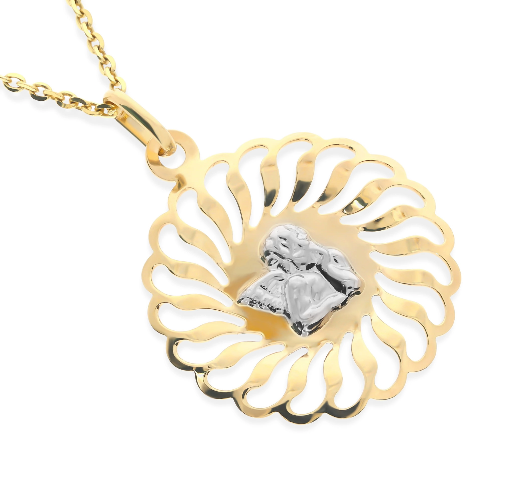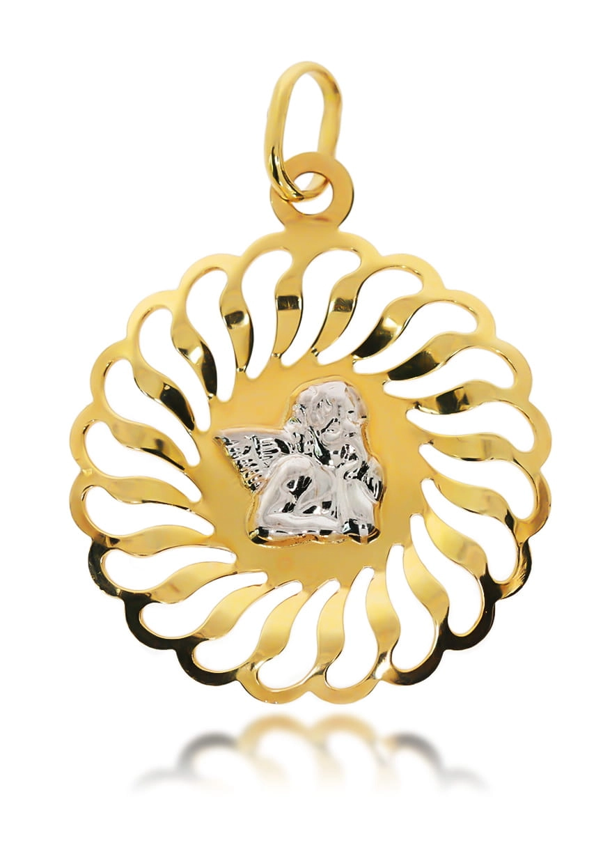 Pajuskite ramybę ir švelnumą su šiuo nuostabiu geltono ir balto aukso medalikėliu, kuriame pavaizduotas mielas angeliukas. Šis išskirtinis papuošalas, pagamintas iš aukščiausios kokybės 585 prabos aukso, spinduliuoja elegancija ir šiluma. Kruopščiai sukurta detalė, kurioje angeliukas švelniai iškyla iš baltojo aukso, apsuptas spinduliuojančio geltonojo aukso, sukuria vizualiai patrauklų ir prasmingą dizainą. Jo skersmuo 2,25 cm puikiai tinka tiek kasdieniam nešiojimui, tiek ypatingoms progoms.