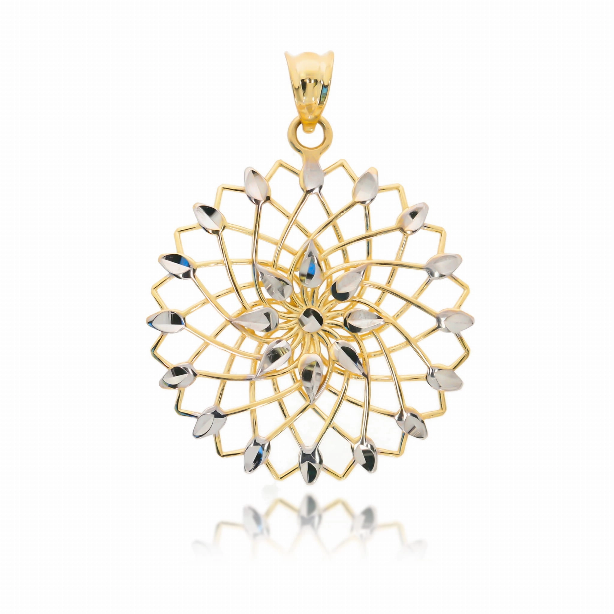 Moteriškas geltono ir balto aukso pakabukas „Gėlės žiedas“ 585