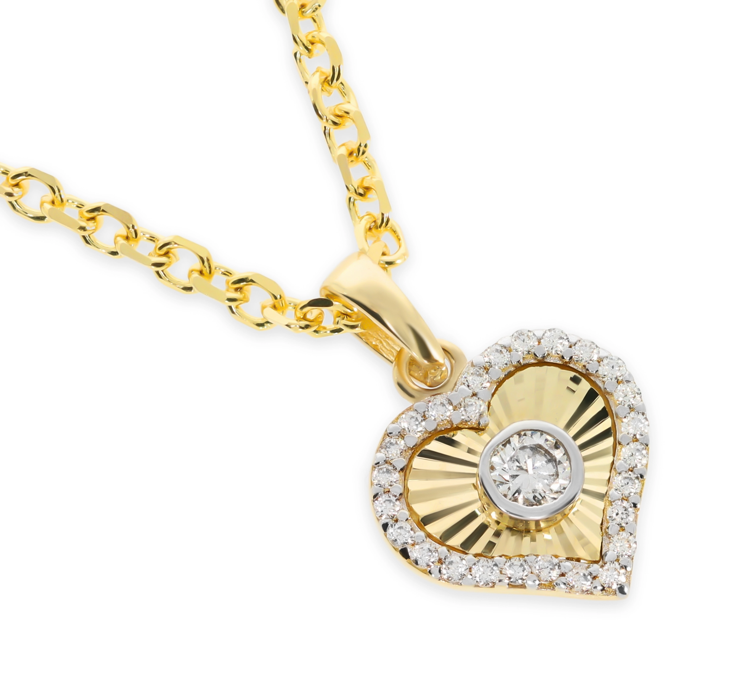 Moteriškas geltono ir balto aukso pakabukas širdelė su cirkoniais 585