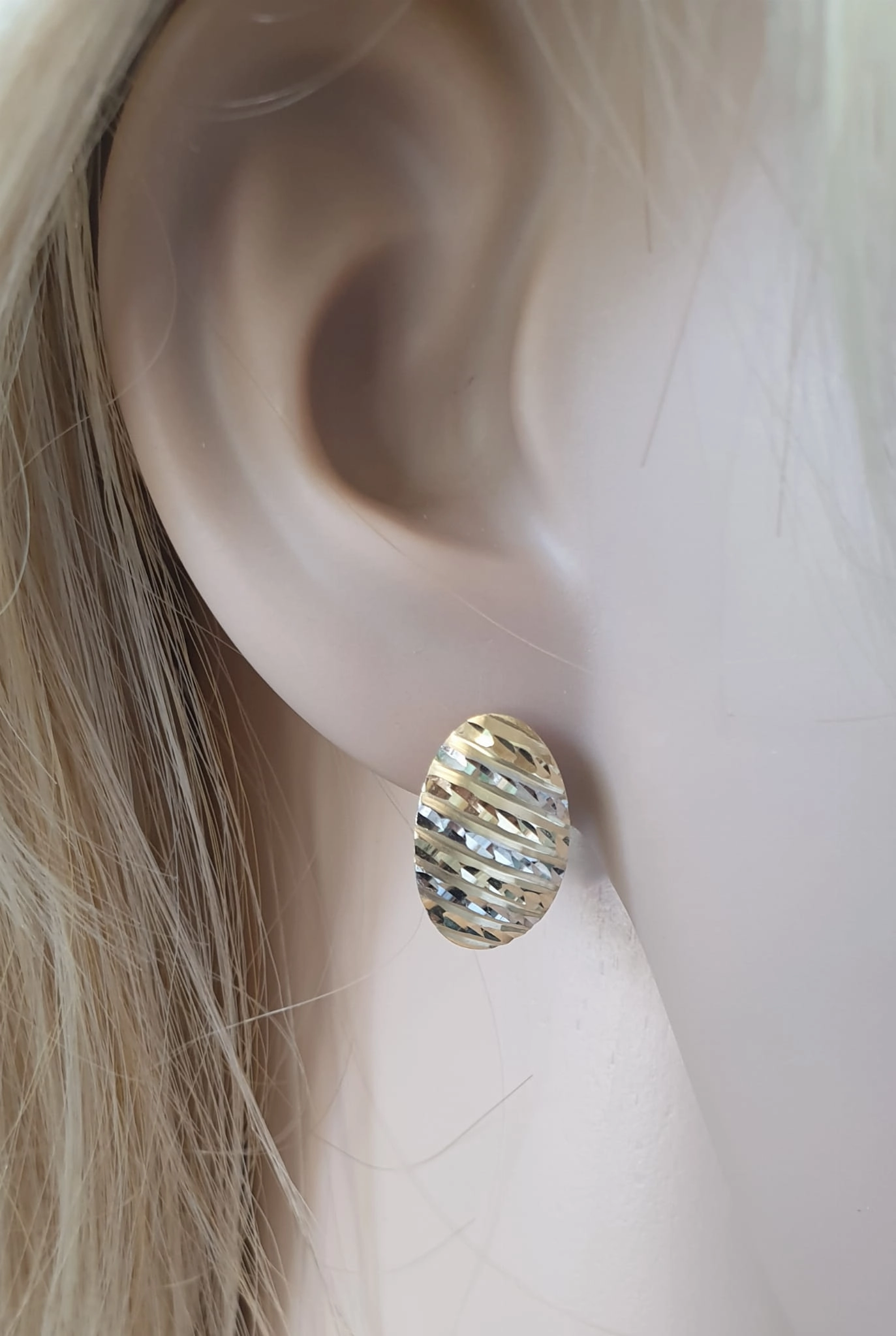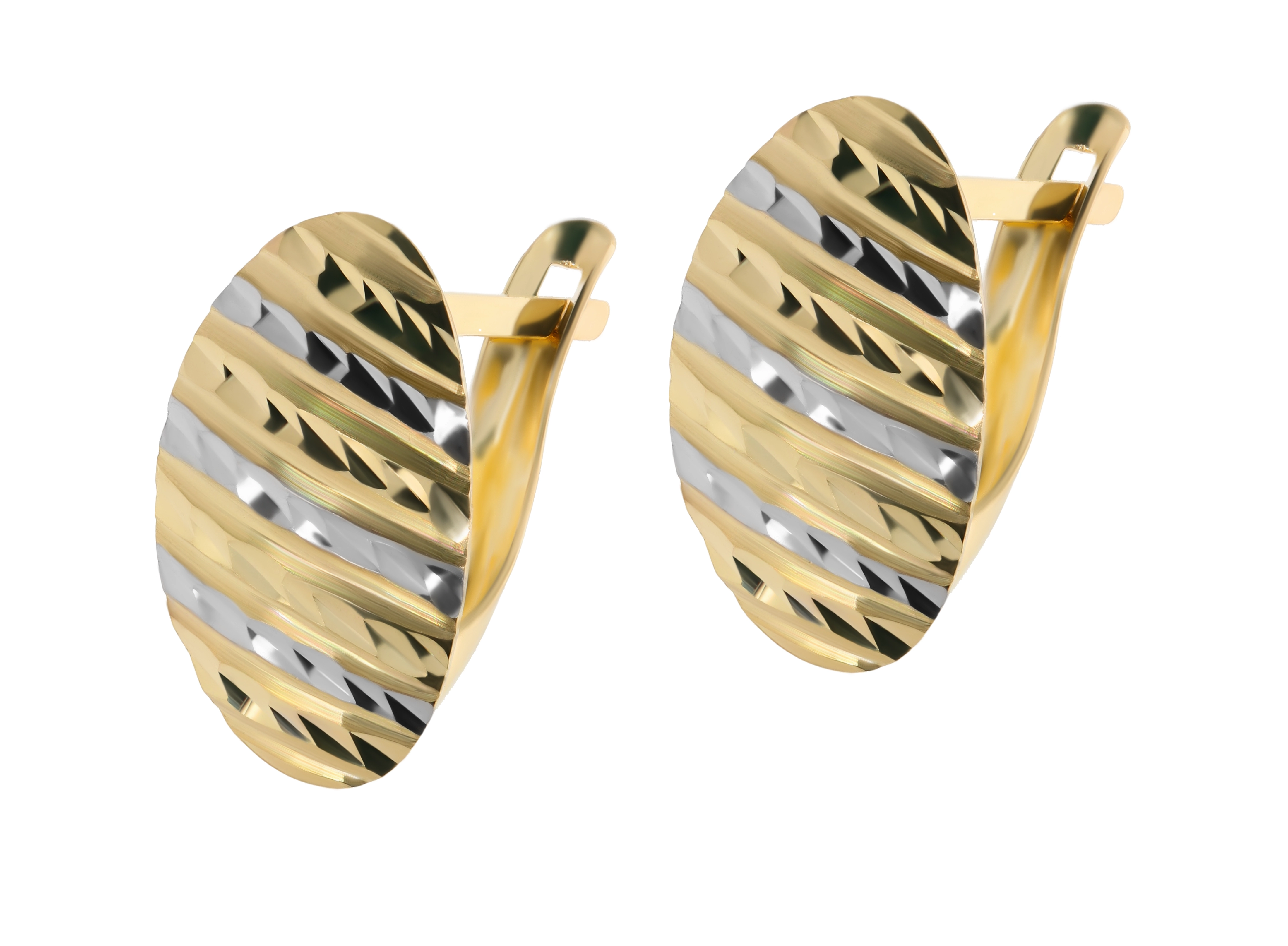 Moteriški dviejų spalvų aukso auskarai su raižytais ornamentais 585