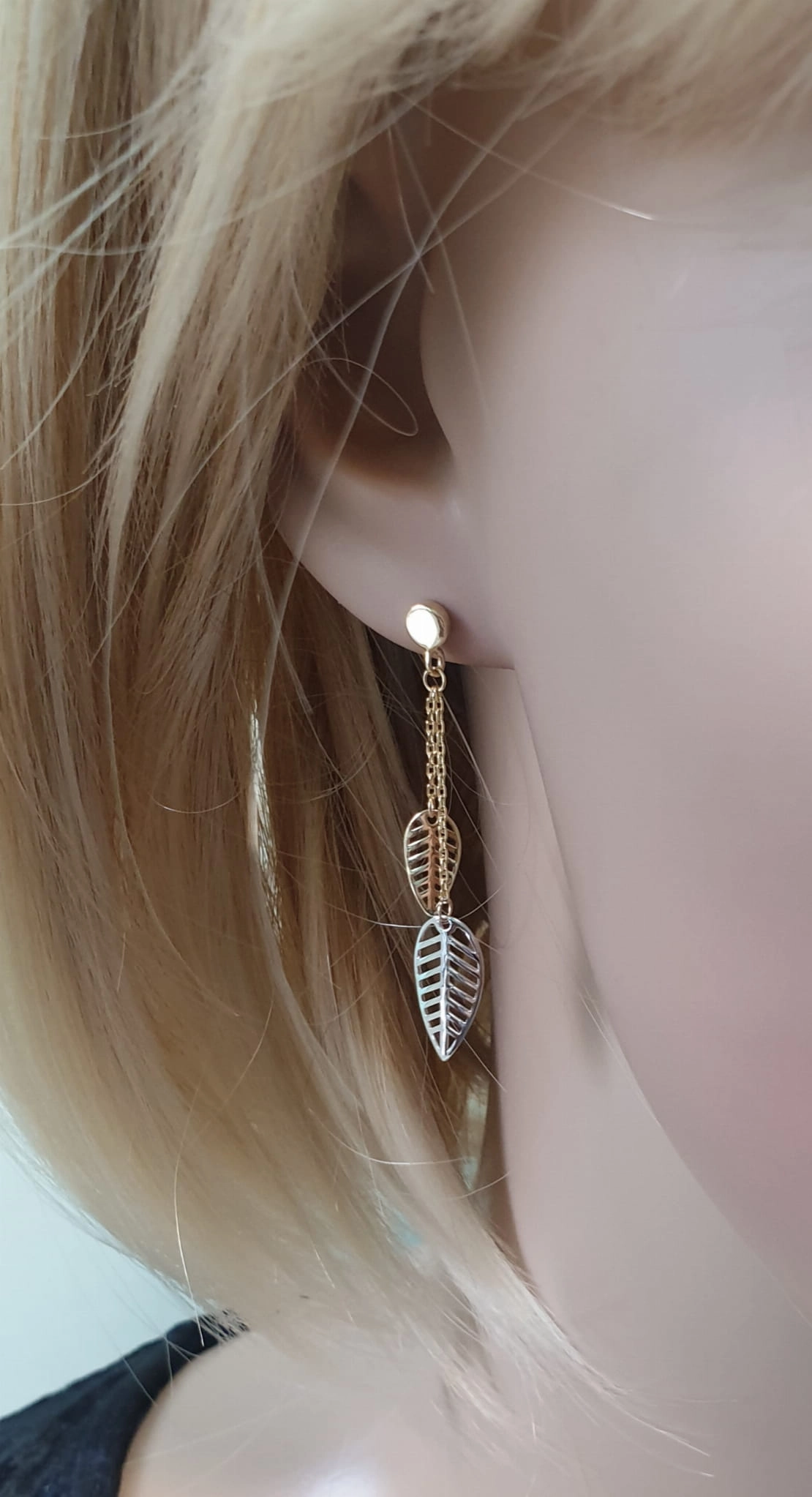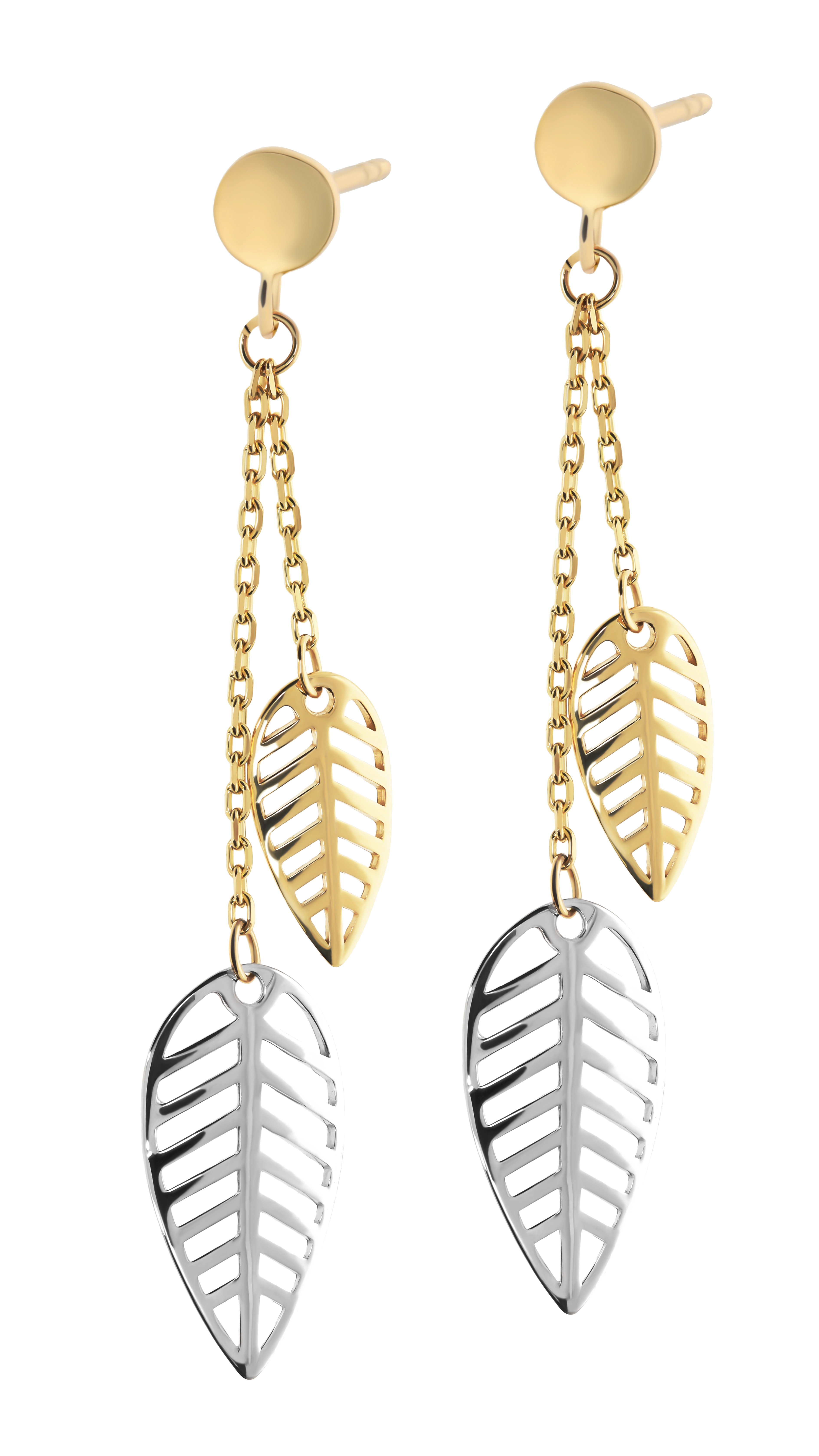 Moteriški dviejų spalvų aukso kabantys auskarai lapeliai 585
