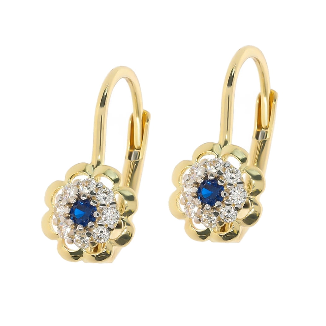 Moteriški geltono aukso auskarai gėlytės su cirkoniais 585