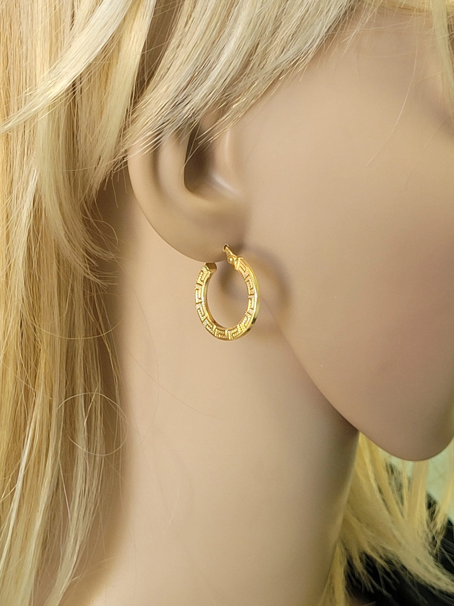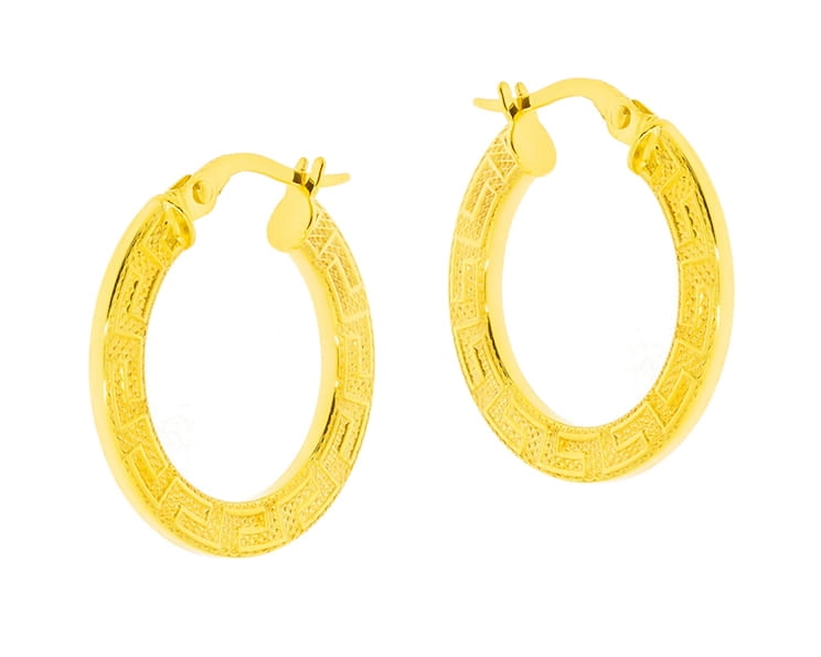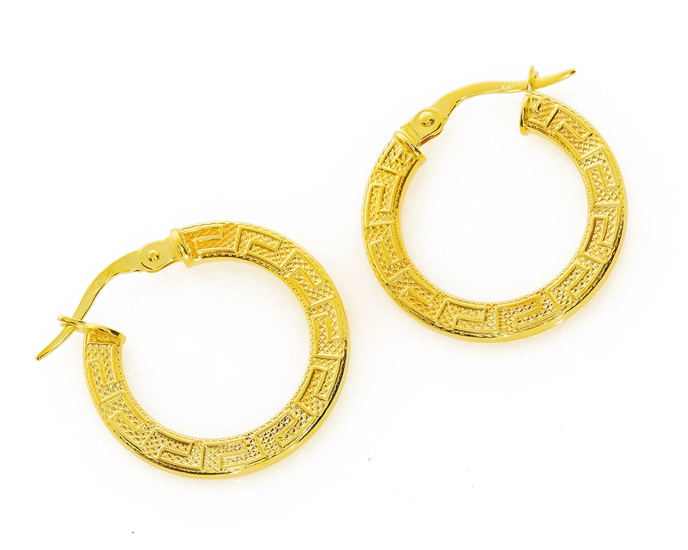 Moteriški geltono aukso auskarai lankeliai su raštu 585