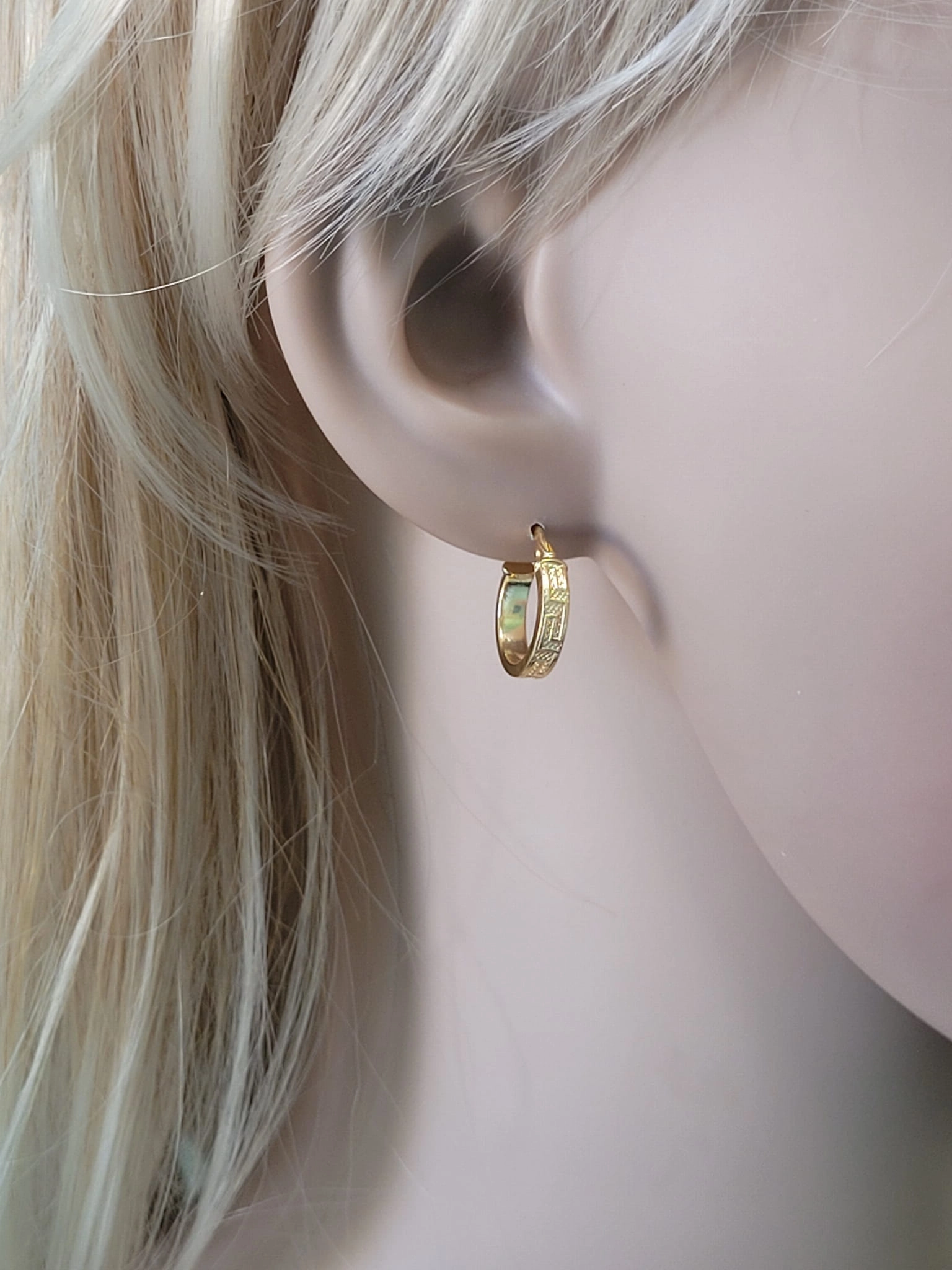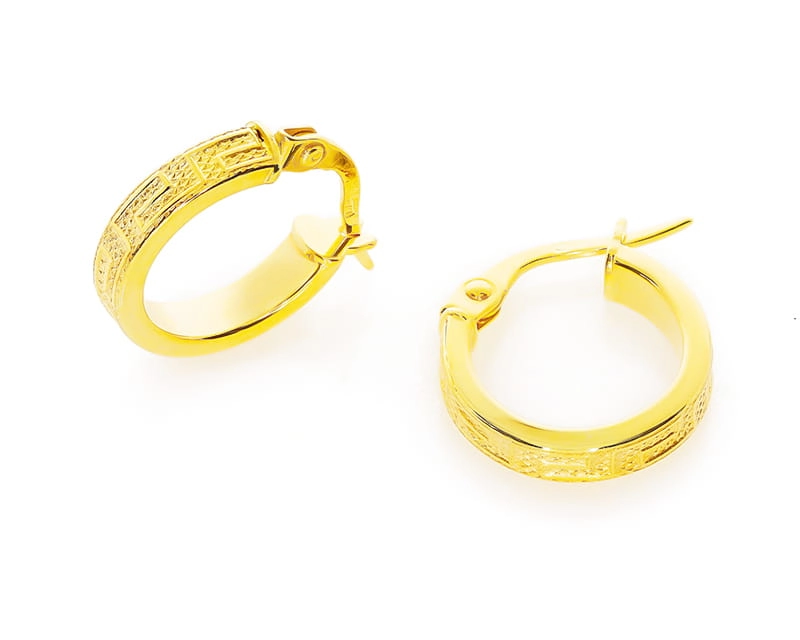 Moteriški geltono aukso auskarai lankeliai su raštu 585
