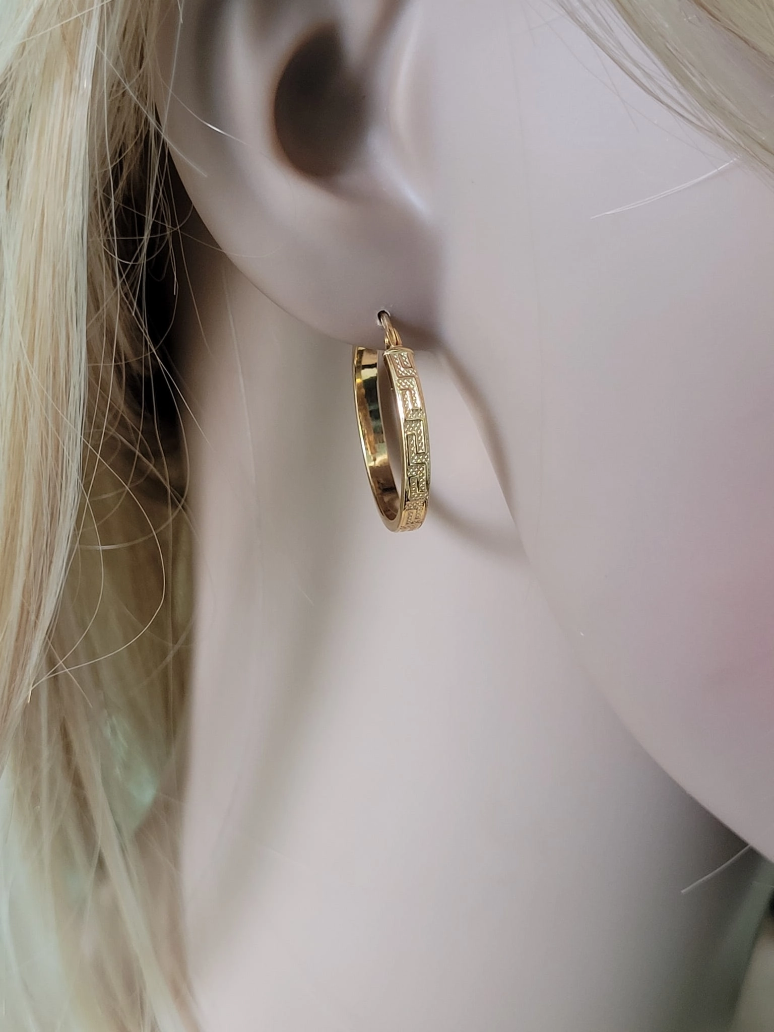 Atraskite nepakartojamą eleganciją su šiais nuostabiais geltono aukso auskarais lankeliais, pagamintais iš aukščiausios 585 prabos aukso. Šie auskarai – tai klasikos ir modernumo derinys, sukurtas moteriai, kuri vertina subtilų grožį ir išskirtinumą. Jų apvalus, lankelių formos dizainas yra papuoštas preciziškai išgraviruotu raštu, suteikiančiu jiems unikalumo ir žavesio.