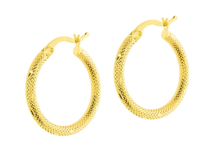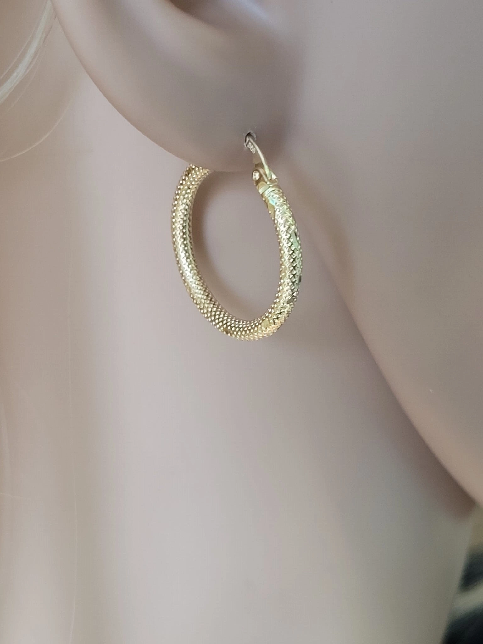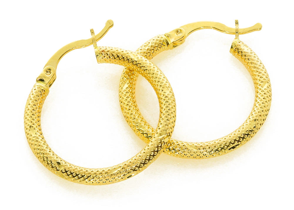 Moteriški geltono aukso auskarai lankeliai su raštu 585