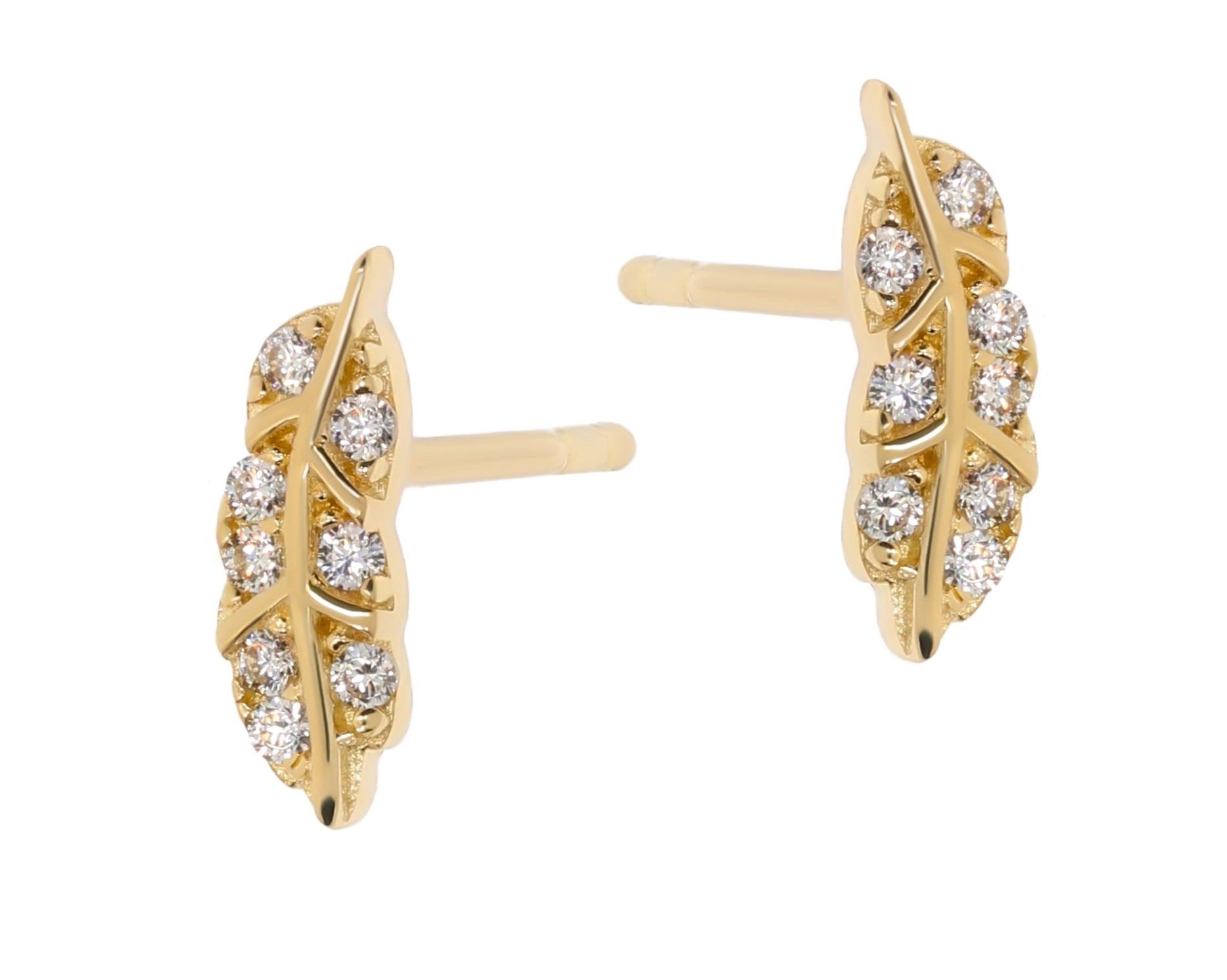 Moteriški geltono aukso auskarai „Lapai“ su baltais cirkoniais 585