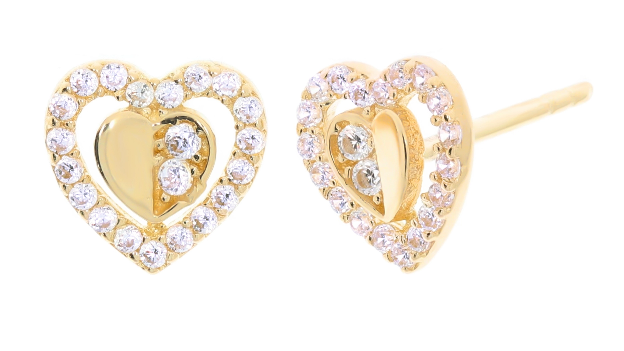 Moteriški geltono aukso auskarai širdelės su cirkoniais 585