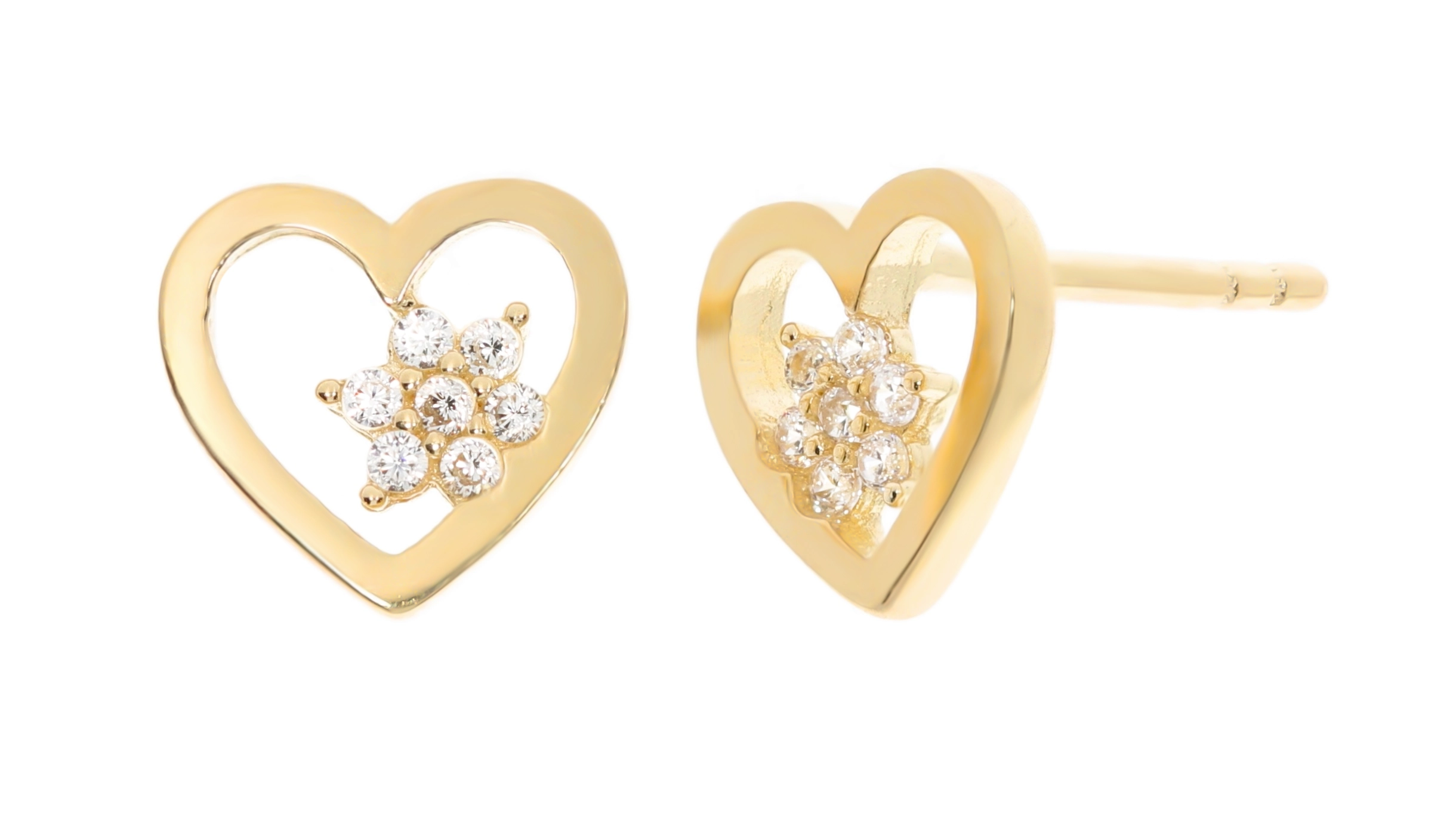 Moteriški geltono aukso auskarai širdelės su cirkoniais 585