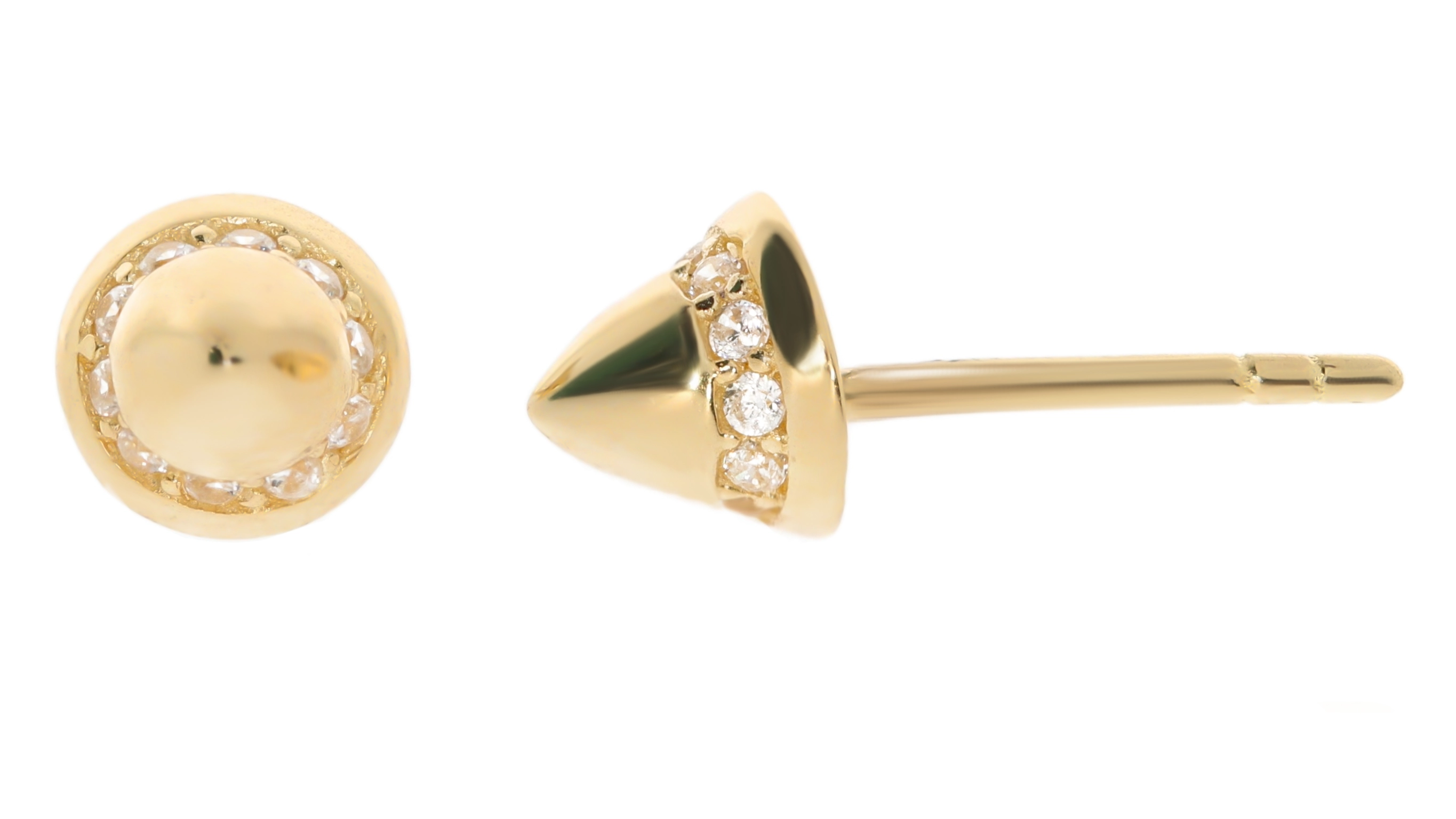 Kiekvienas auskaras yra suprojektuotas kaip elegantiškas kūgis, kurio pagrindo skersmuo siekia 6 mm, o pats kūgis – taip pat 6 mm. Šis unikalus dizainas yra papuoštas žėrinčiais baltais cirkoniais, kurie suteikia papuošalui prabangos ir akinančio spindesio. Cirkoniai kruopščiai įmontuoti, kad atspindėtų šviesą ir sukurtų įspūdingą žvilgesį, priversiantį jus jaustis išskirtine.