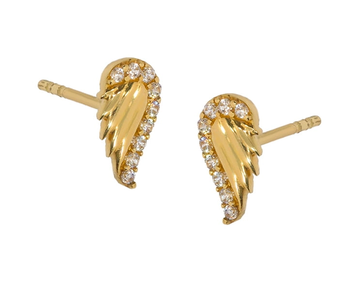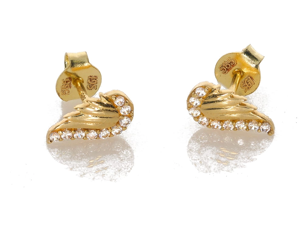 Moteriški geltono aukso auskarai sparneliai su cirkoniais 585