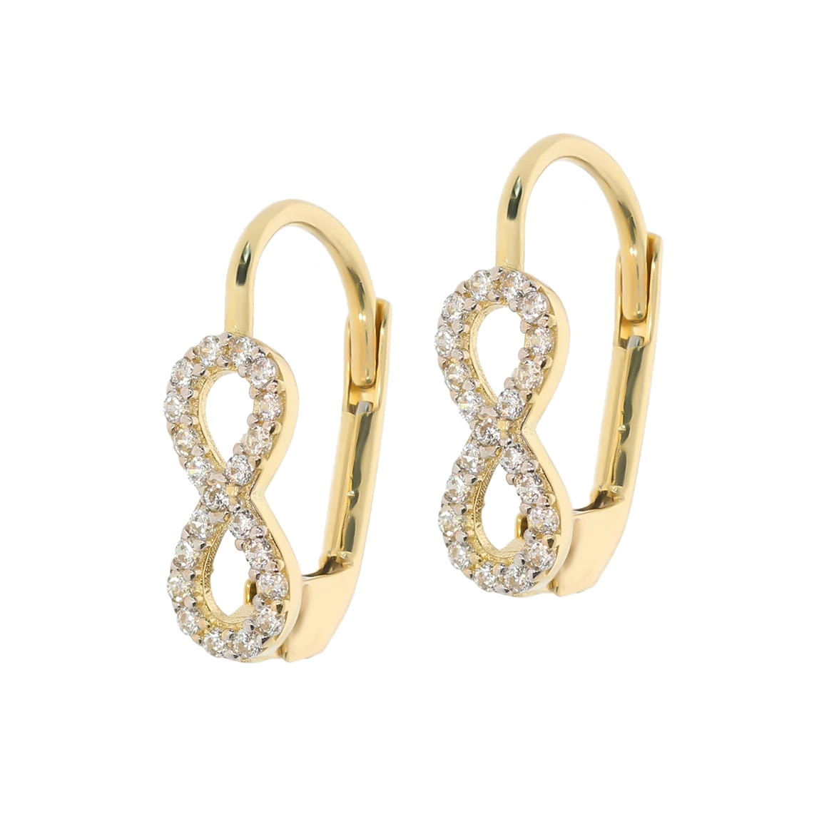 Moteriški geltono aukso auskarai su cirkoniais „Begalybė“ 585