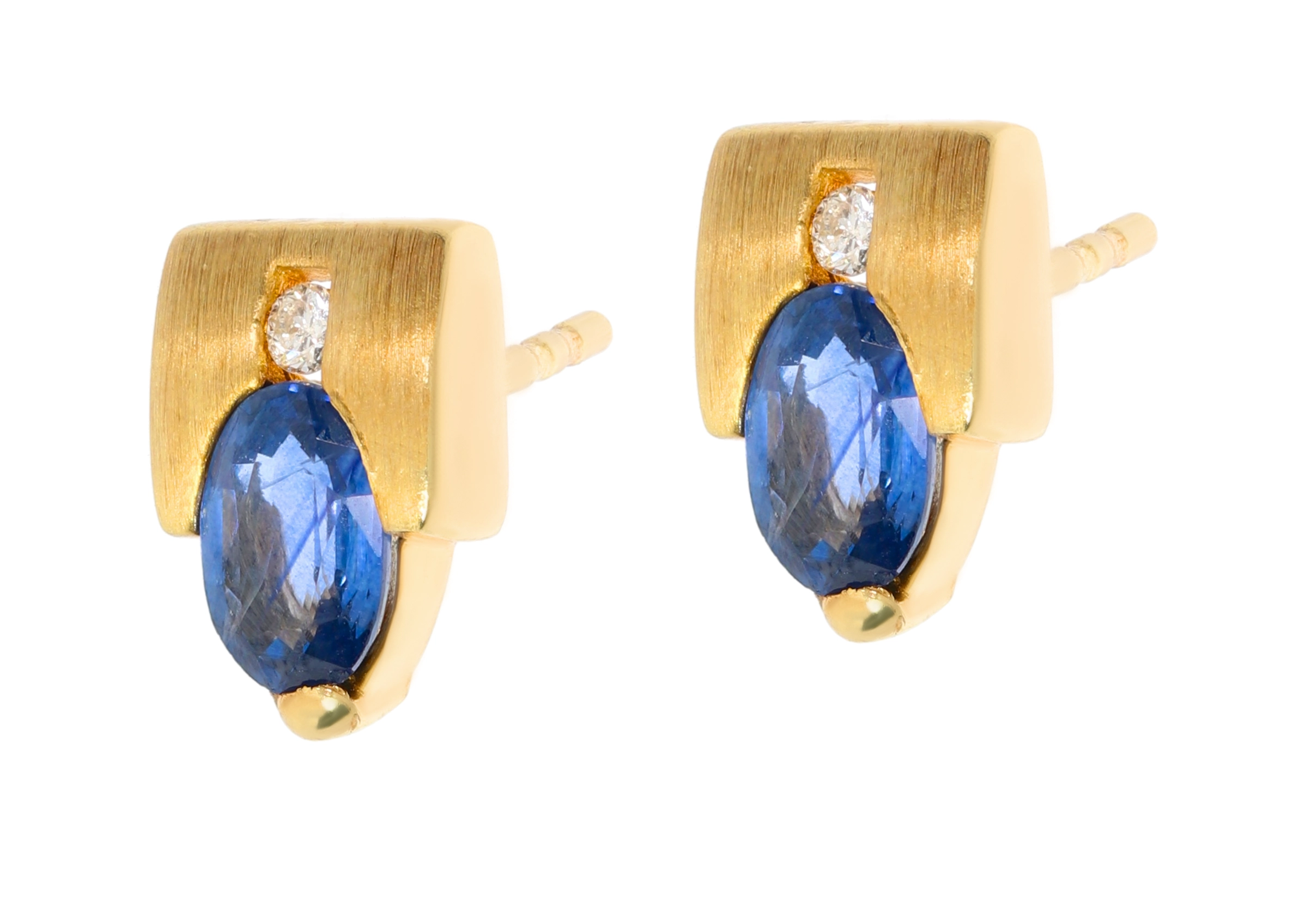 Auskarai pagaminti iš 585 prabos geltono aukso, suteikiančio jiems šiltą ir prabangų atspalvį. Kiekviename auskare įmontuotas ovalo formos mėlynas safyras, kurio gili spalva simbolizuoja išmintį ir karališkumą. Virš safyro subtiliai įtvirtintas apvalus deimantas, kurio bendra masė siekia 0,05 ct (SI2 švarumo, I spalvos), suteikiantis papuošalui papildomo spindesio. Auskarų plotis yra 7 mm, o ilgis – 1 cm, todėl jie yra pakankamai pastebimi, tačiau ne per daug masyvūs, puikiai tinkantys tiek kasdieniam dėvėjimui, tiek ypatingoms progoms. Šie auskarai su patogiu smeigtuko užsegimu taps neatsiejama Jūsų stiliaus dalimi, pabrėžiančia Jūsų unikalumą ir eleganciją.