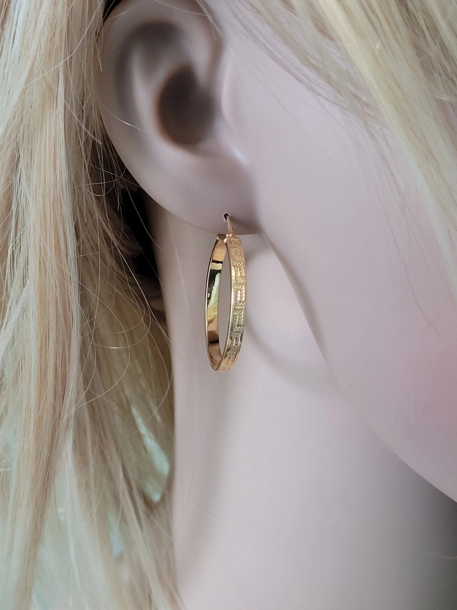Atraskite išskirtinumą su šiais nuostabiais geltono aukso kolčikais, kurie sujungia klasikinę formą su moderniais raižiniais. Šie kolčikai, pagaminti iš aukščiausios kokybės 585 prabos aukso, yra puikus pasirinkimas moteriai, kuri vertina eleganciją ir nori pabrėžti savo individualumą. Jų subtilus, bet kartu ir ryškus dizainas su geometriniais raštais suteikia jiems unikalumo ir leidžia išsiskirti iš minios.