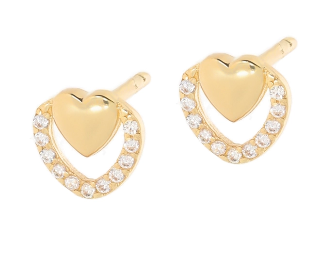 Moteriški geltono aukso širdelės formos auskarai su cirkoniais 585