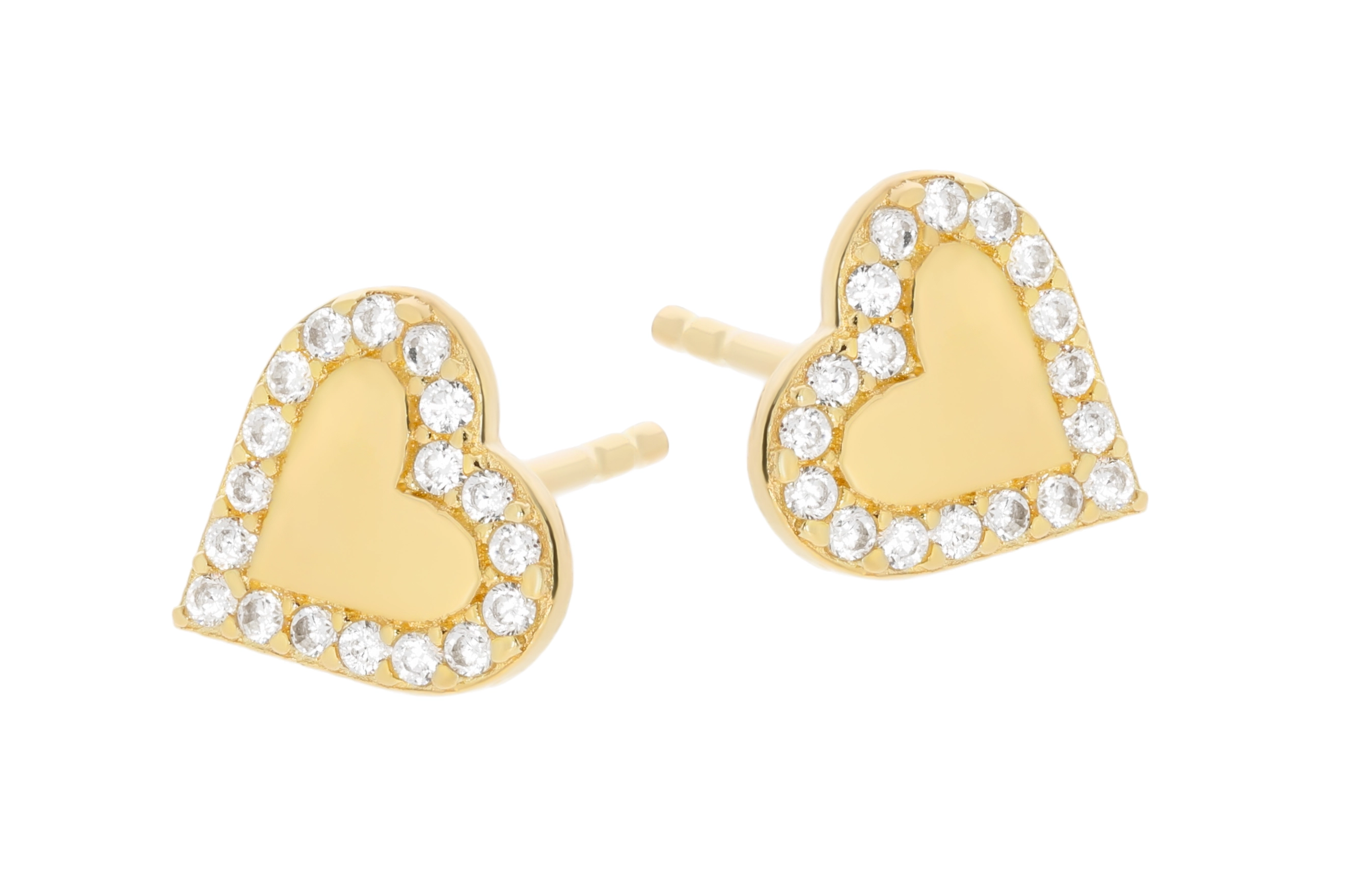Moteriški geltono aukso širdelės formos auskarai su cirkoniais 585